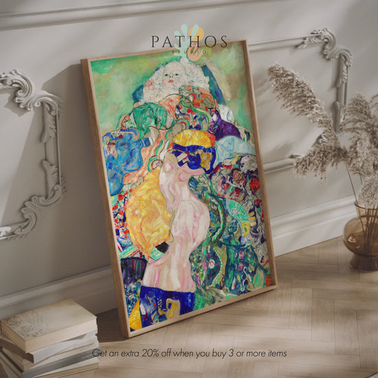 Gustav Klimts klassische Öl-auf-Leinwand-Gemälde mit dem Titel „Baby“ (oder „Wiege“) können als hochwertiger Giclée-Kunstdruck mit einer breiten Palette an Rahmenoptionen bestellt werden.