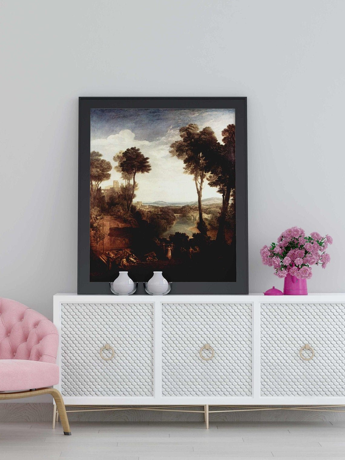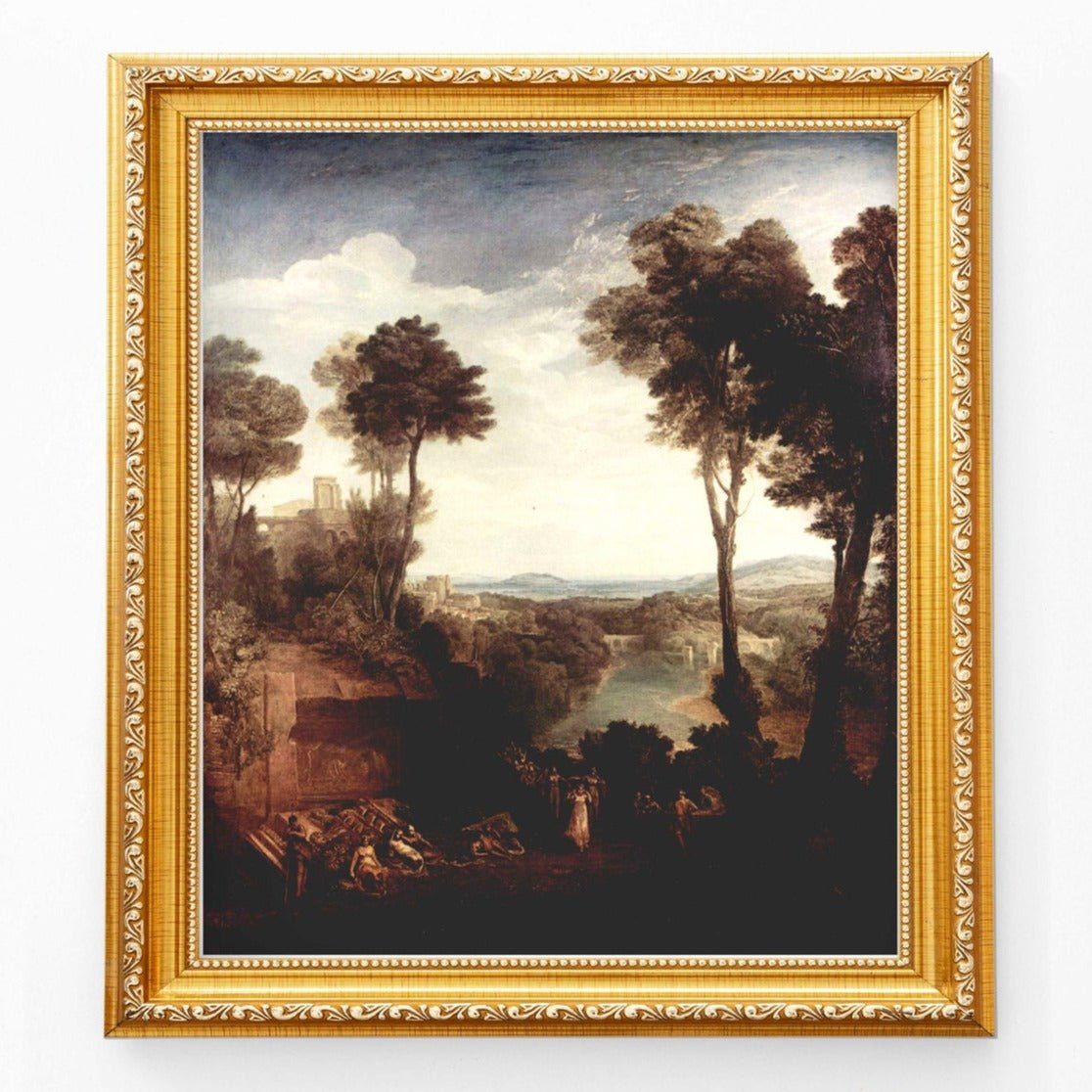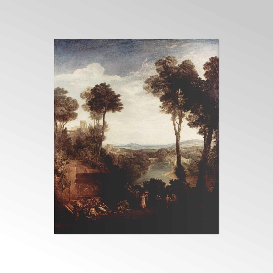 JMW Turners klassisches Öl-auf-Leinwand-Gemälde mit dem Titel „Merkur und Herse“, erhältlich als Giclée-Druck in verschiedenen maßgeschneiderten Größen.