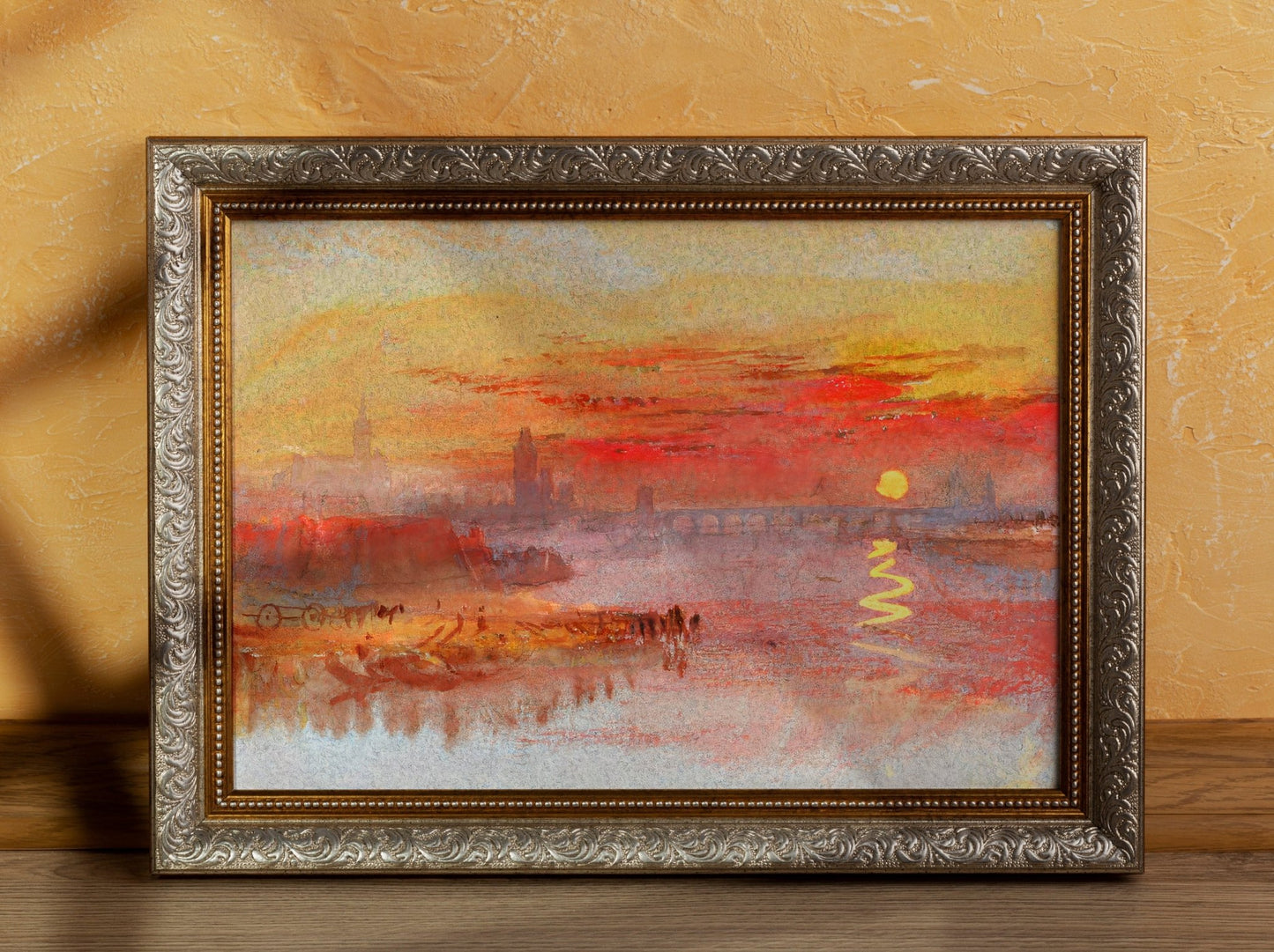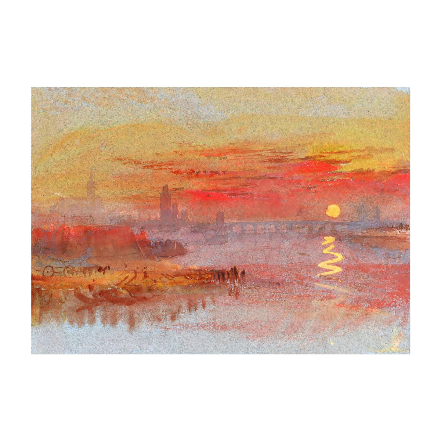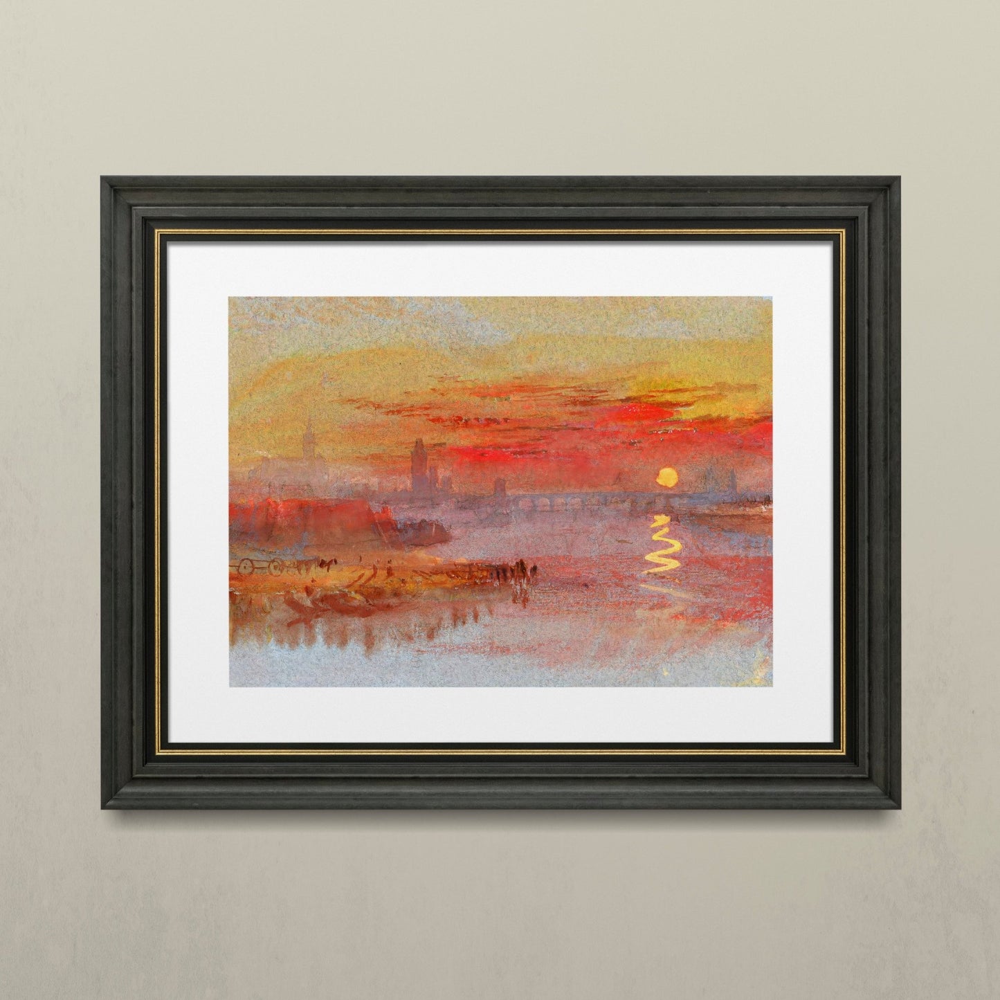 JMW Turners klassisches Öl-auf-Leinwand-Gemälde „The Scarlet Sunset Circa“ ist als hochauflösender Giclée-Druck in verschiedenen maßgeschneiderten Größen erhältlich.