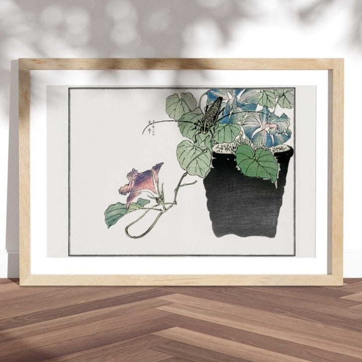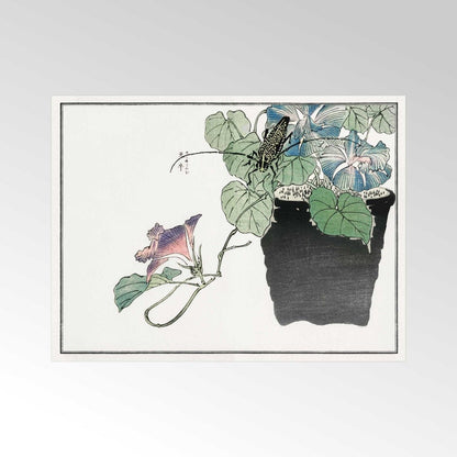 Morimoto Tokos klassische Holzschnittillustration „Japanischer Papierschneiderkäfer“ aus dem 20. Jahrhundert, erhältlich als hochwertiger Giclée-Kunstdruck mit einer großen Auswahl an Rahmenoptionen.