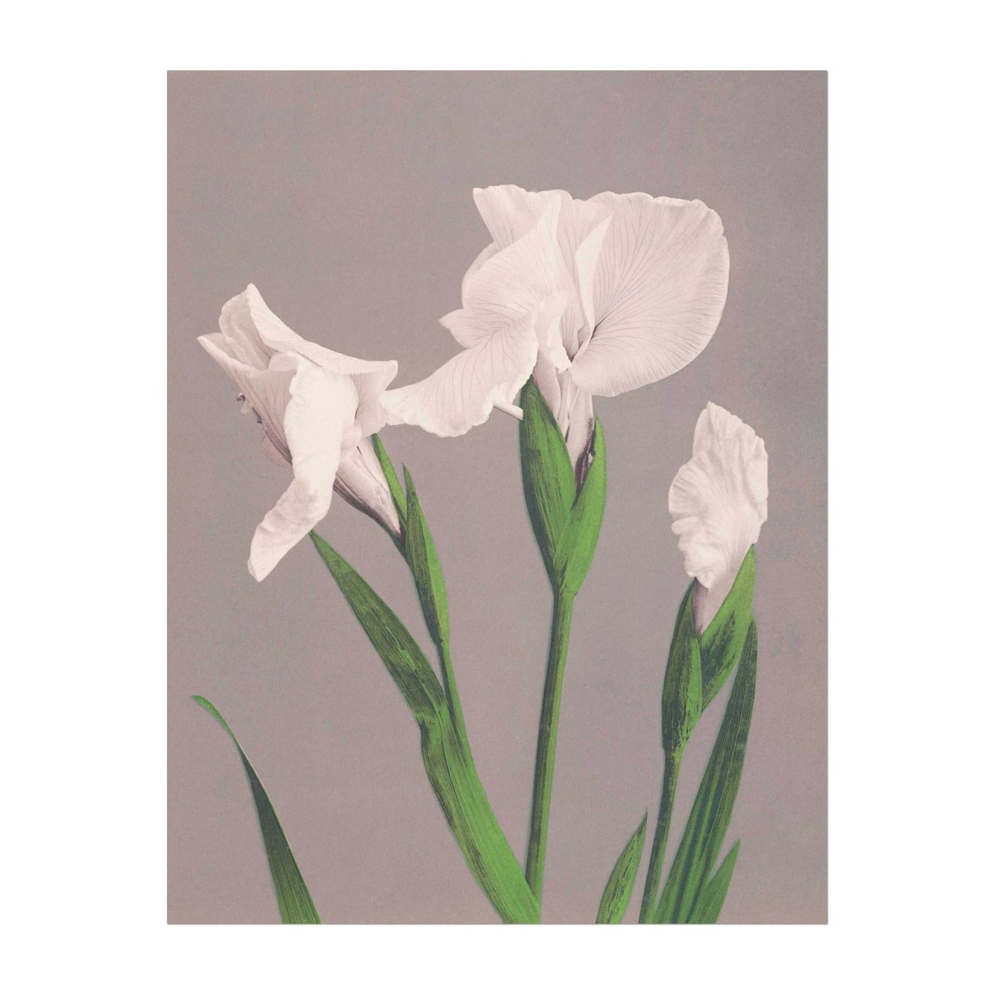 Ein fotomechanischer Druck weißer Schwertlilien von Ogawa Kazumasa, der als hochwertiger Giclée-Kunstdruck mit einer breiten Palette an Rahmenoptionen bestellt werden kann.