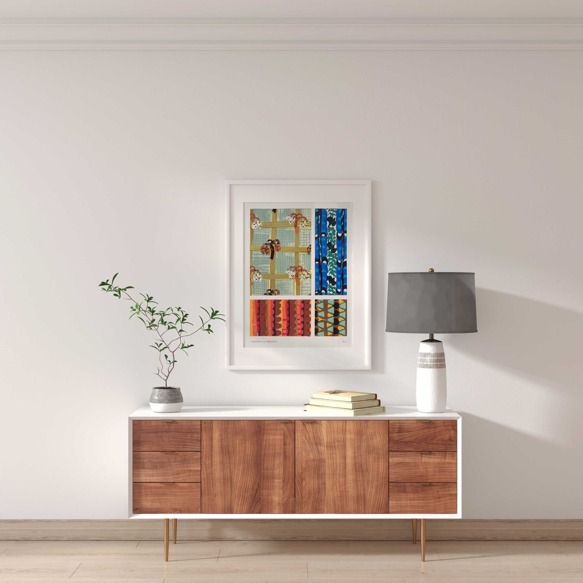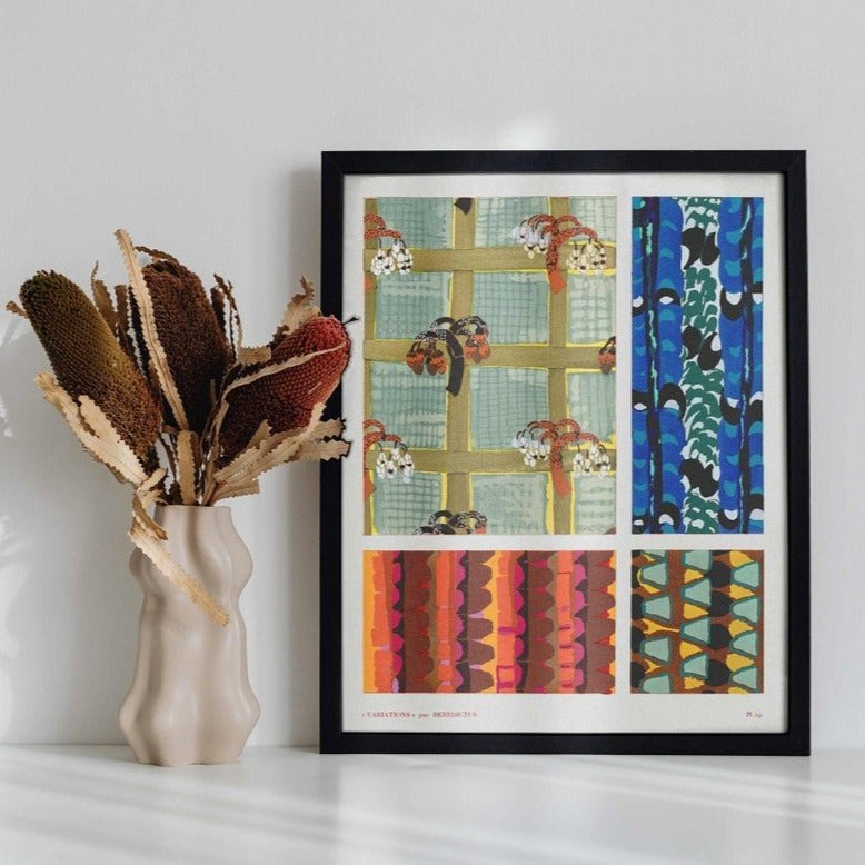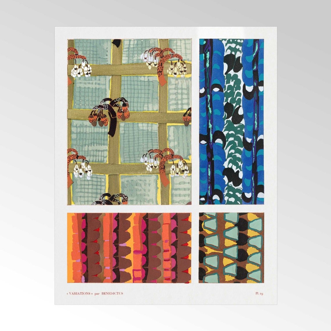 „Variations 19“ aus „Quatre-Vingt-Six Motifs Décoratifs En Vingt Planches“ von Édouard Bénédictus, erhältlich als hochwertiger Giclée-Kunstdruck mit einer breiten Palette an Rahmenoptionen.