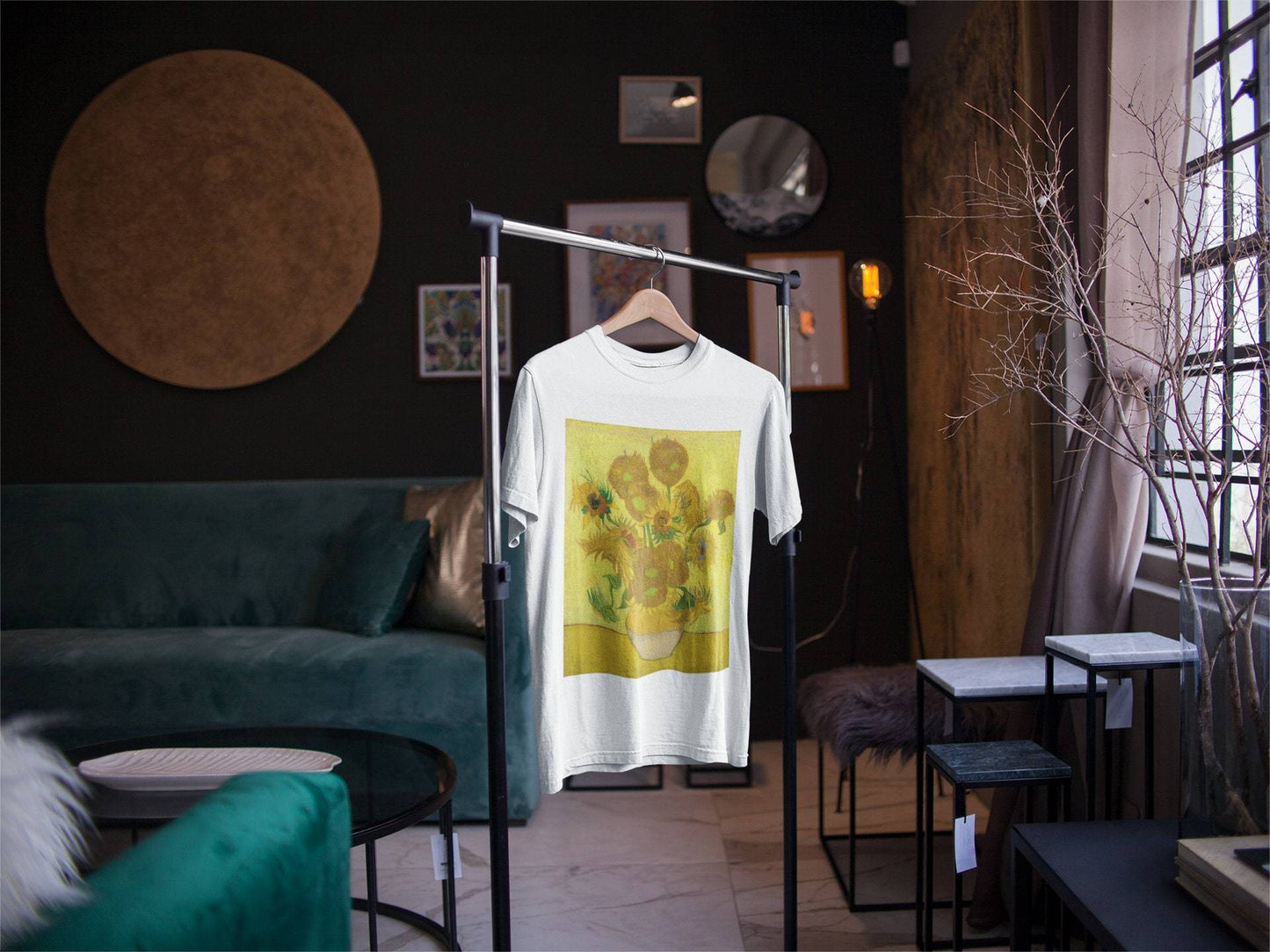 Unser charakteristisches Unisex-T-Shirt mit Vincent Van Goghs klassischem Kunstwerk „Sonnenblumen“.