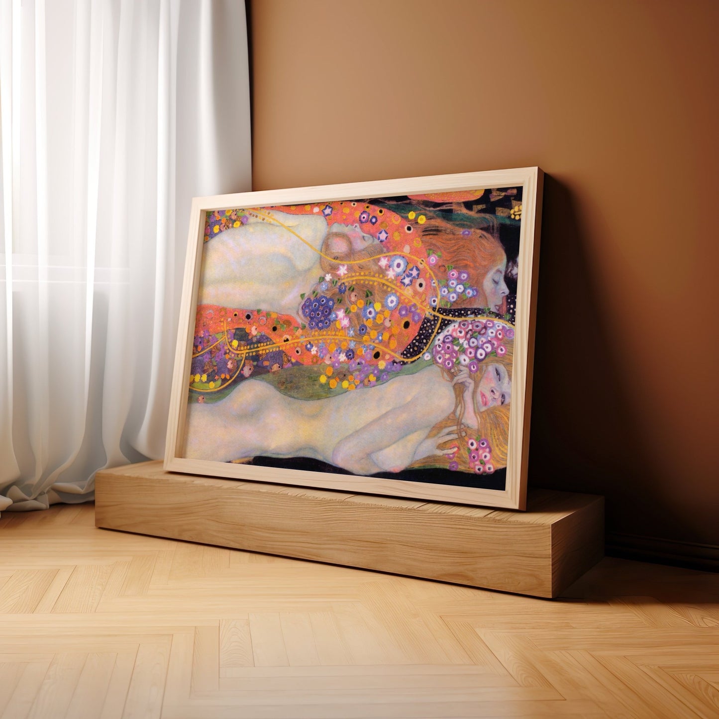 La peinture classique à l'huile sur toile de Gustav Klimt intitulée "Serpents d'eau II", disponible sur commande en tant qu'impression d'art giclée premium avec une large gamme d'options de cadrage.