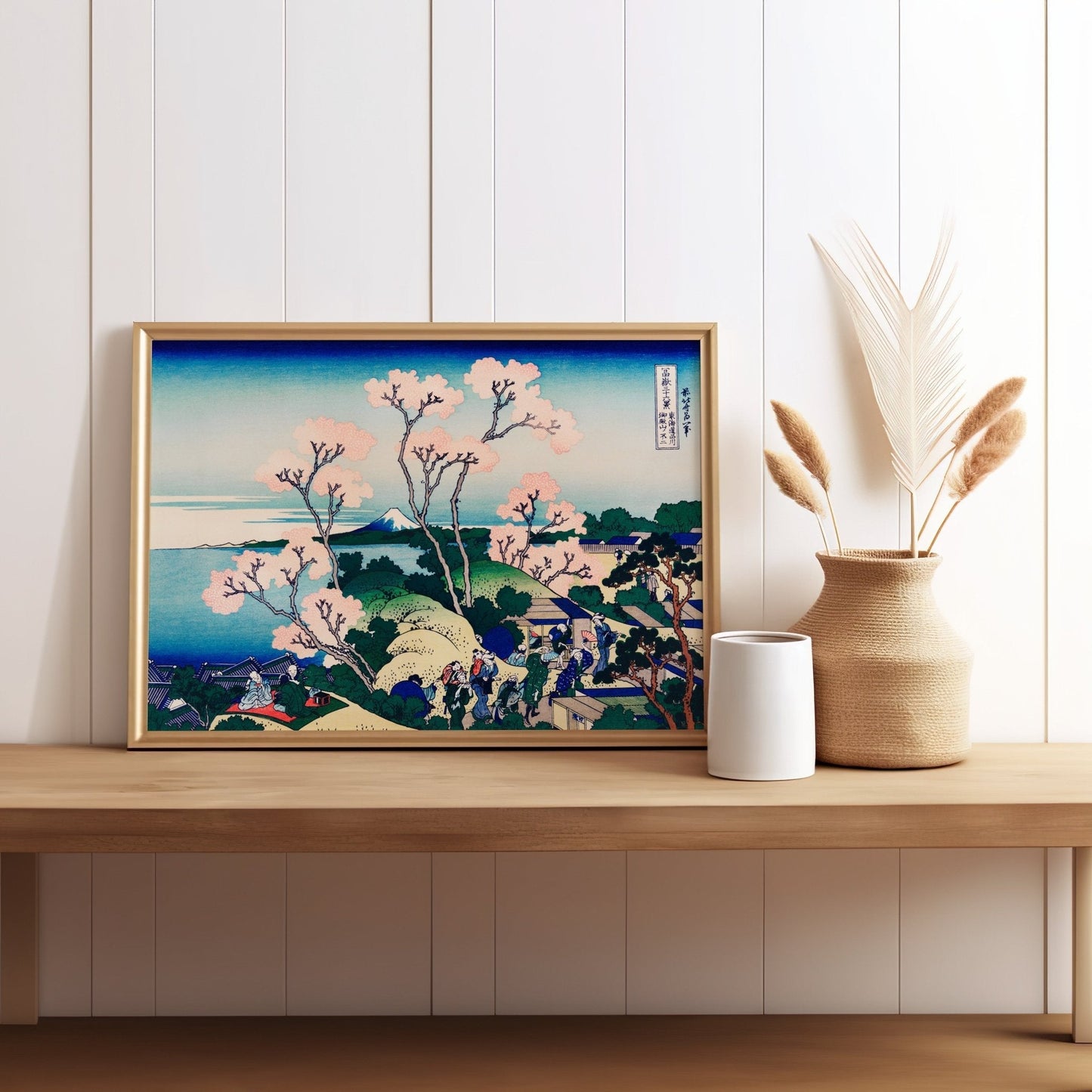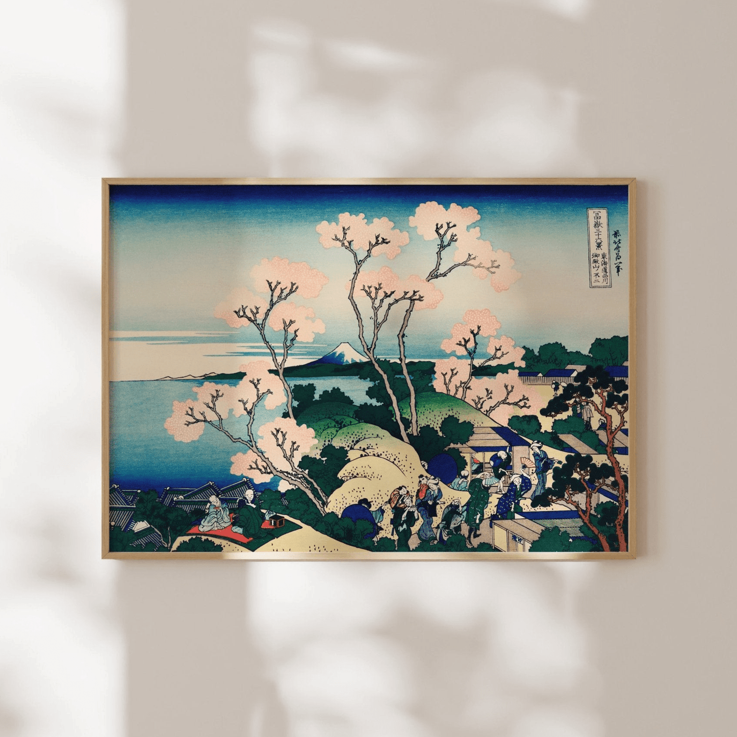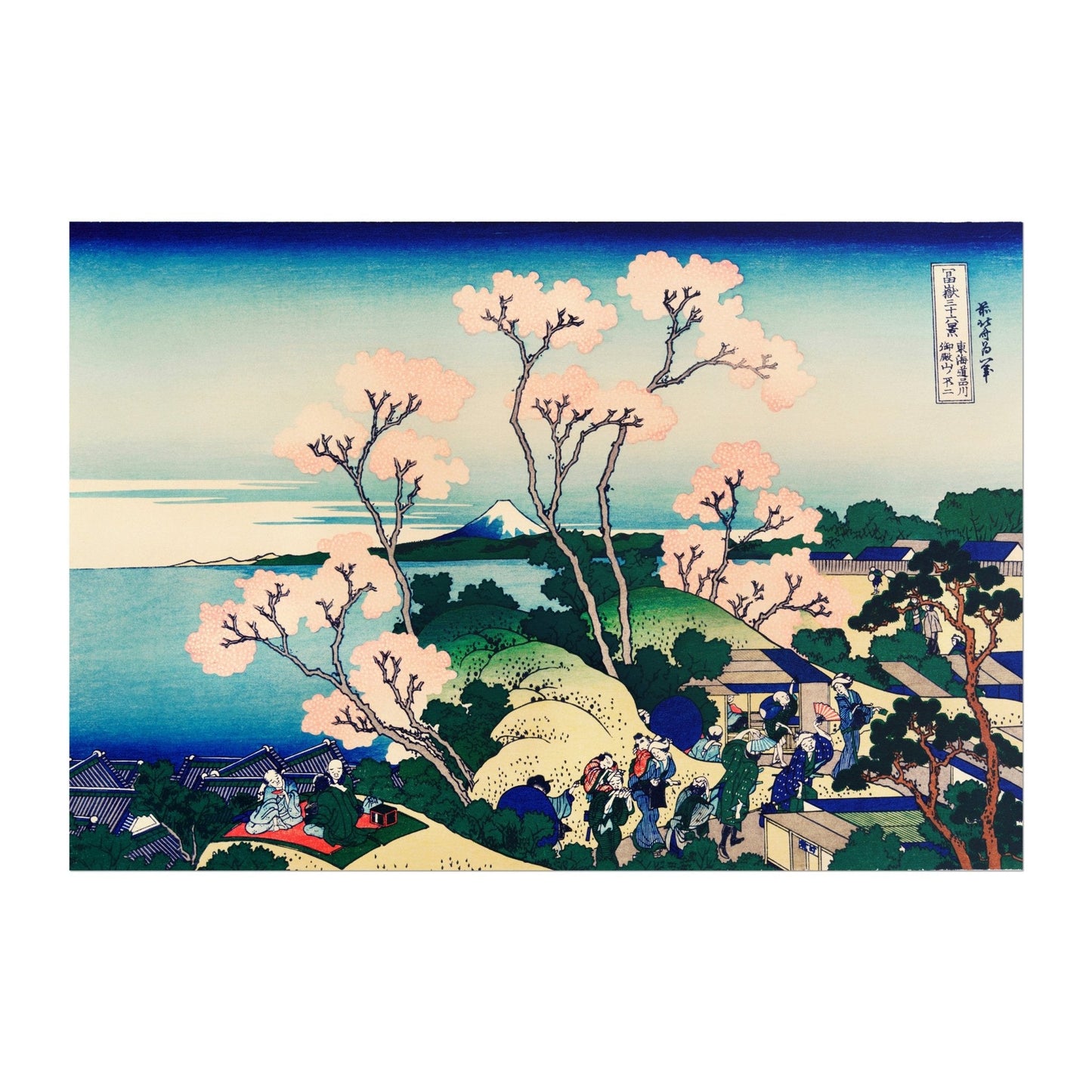 L'illustration de gravure sur bois classique du XIXe siècle de Katsushika Hokusai « Goten-Yama Hill, Shinagawa sur le Tokaido », disponible sur commande en tant qu'impression d'art giclée premium avec une large gamme d'options de cadrage.