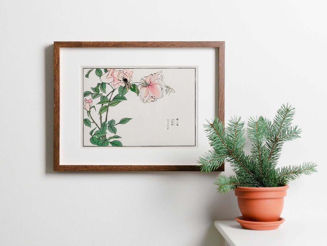 L'illustration de gravure sur bois classique du XXe siècle de Morimoto Toko « Abeille et fleur » est disponible sur commande en tant qu'impression d'art giclée premium avec une large gamme d'options de cadrage.