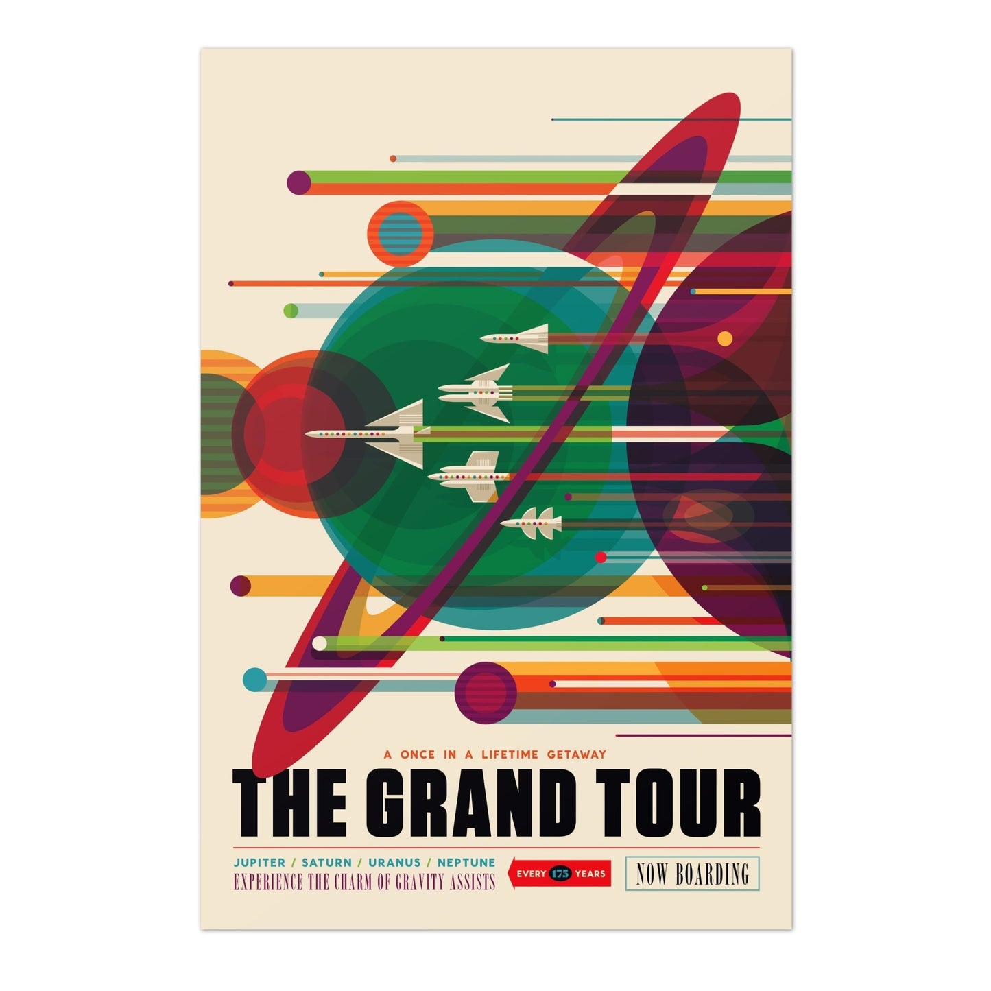 Une fausse affiche de tourisme spatial de la collection « Visions Of The Future » de la NASA / JPL, disponible sous forme d'impression giclée haute résolution dans une variété de tailles sur mesure.