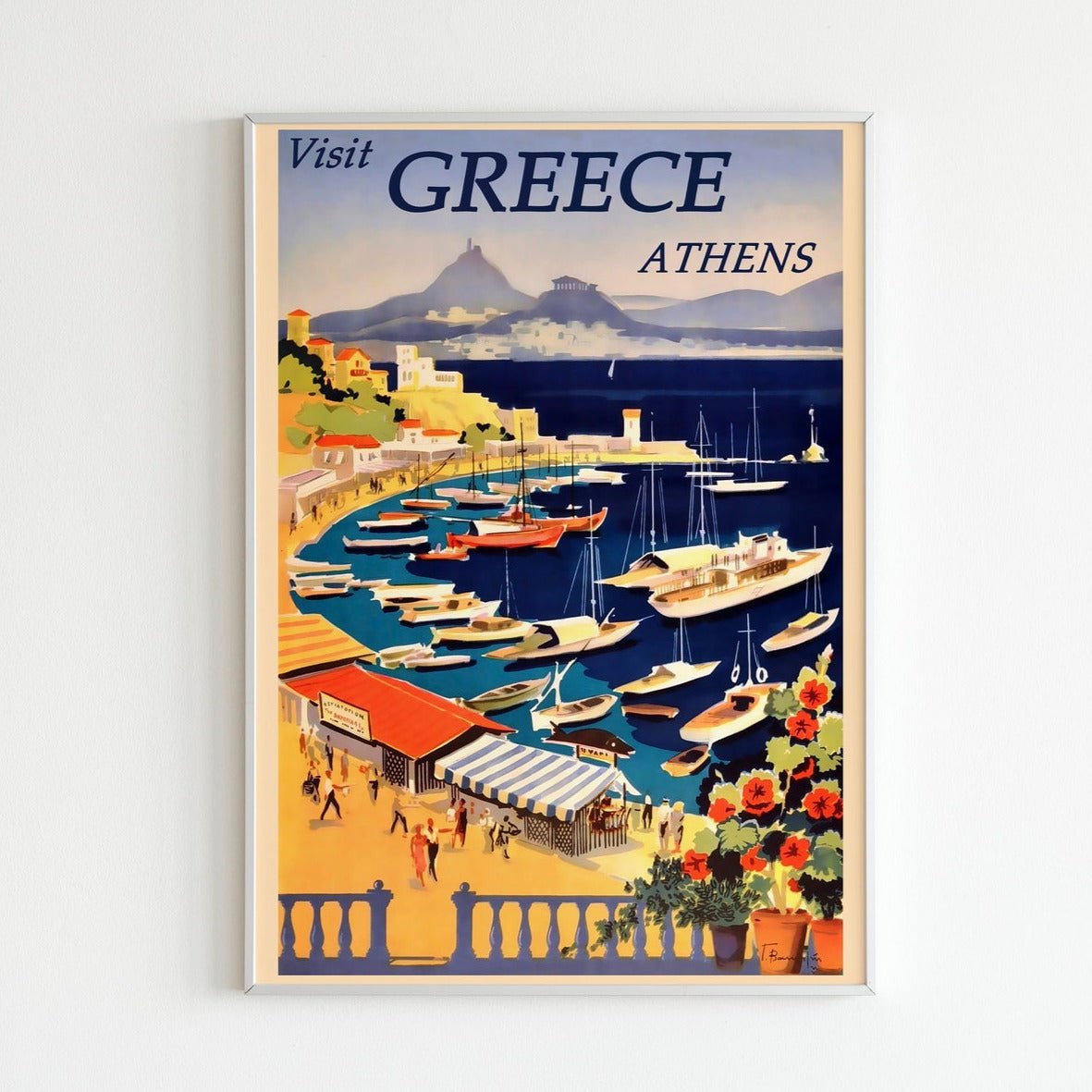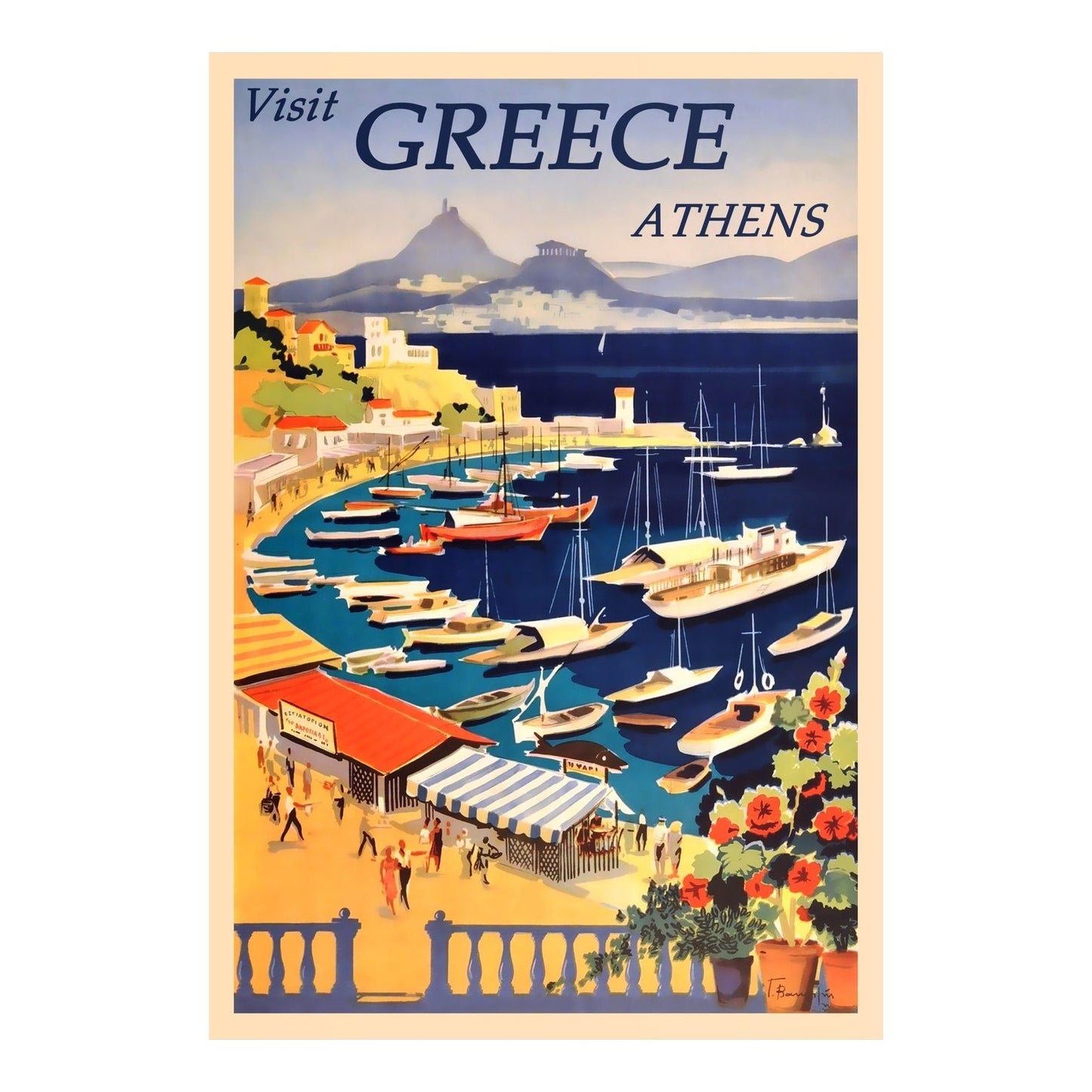 Visitez Athènes - Affiche vintage de voyage en Grèce