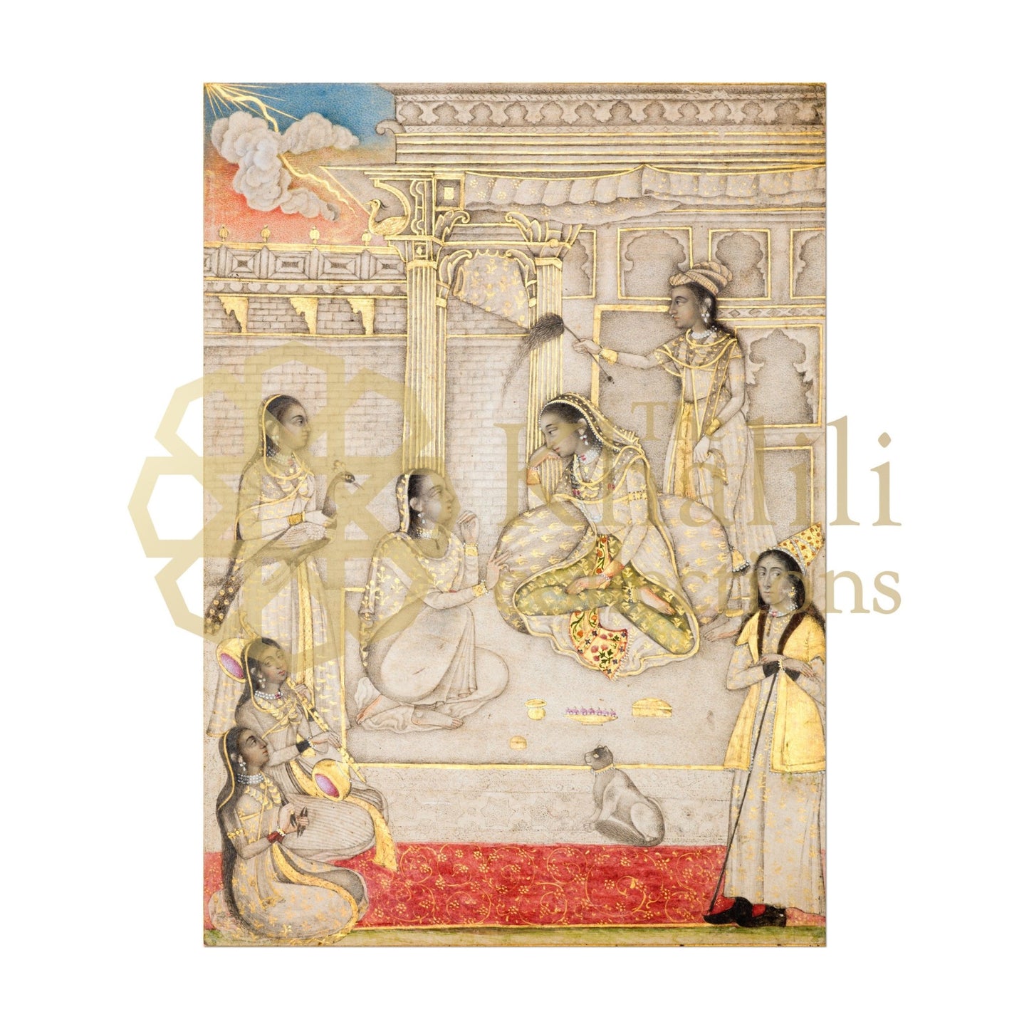 'A Princess Listening To Music', a traditional Deccan painting available as an art print exclusively from Pathos Studio in collaboration with The Khalili Collections.