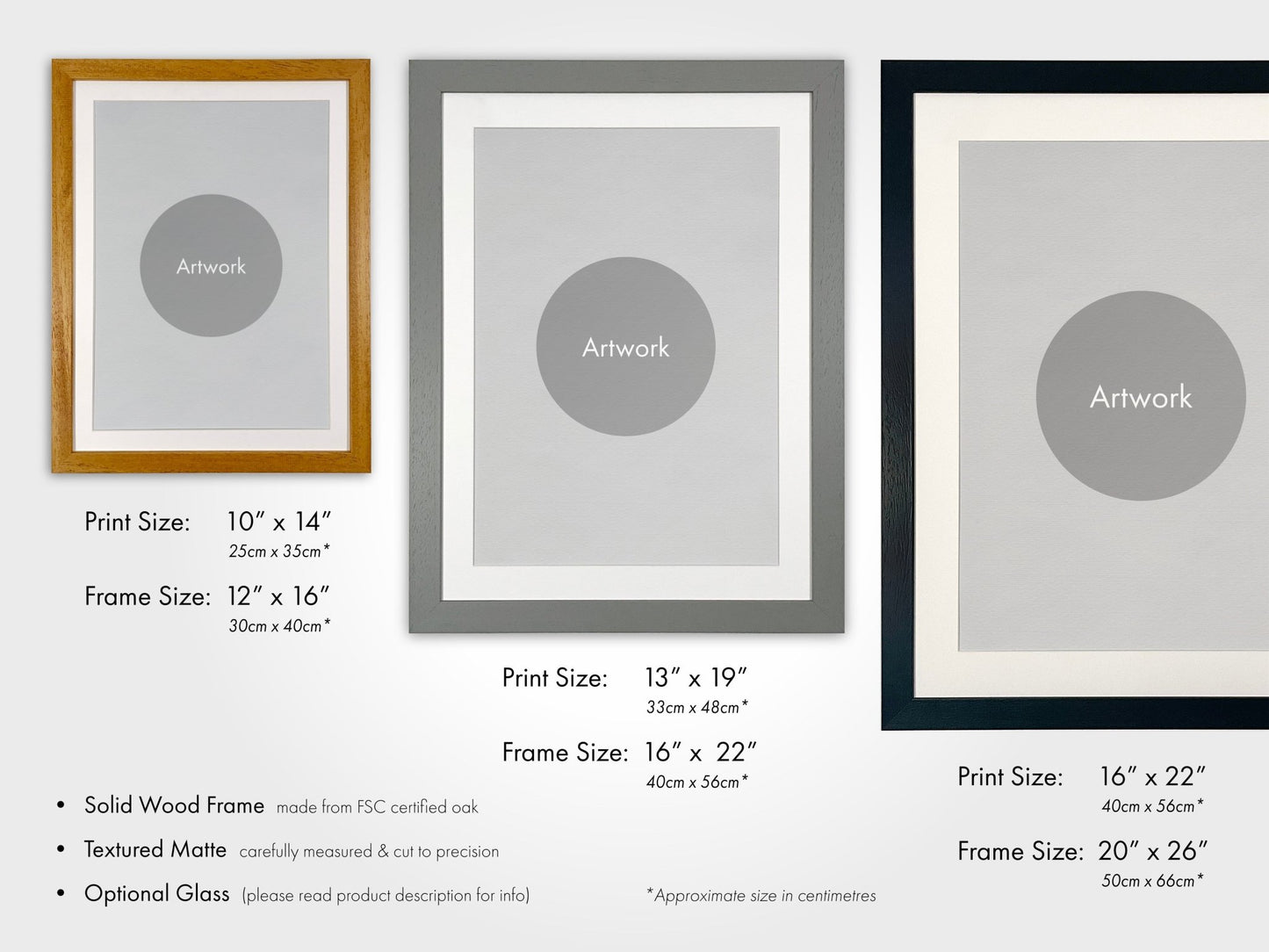 Please see related images for our range of frame options and detailed sizing information.