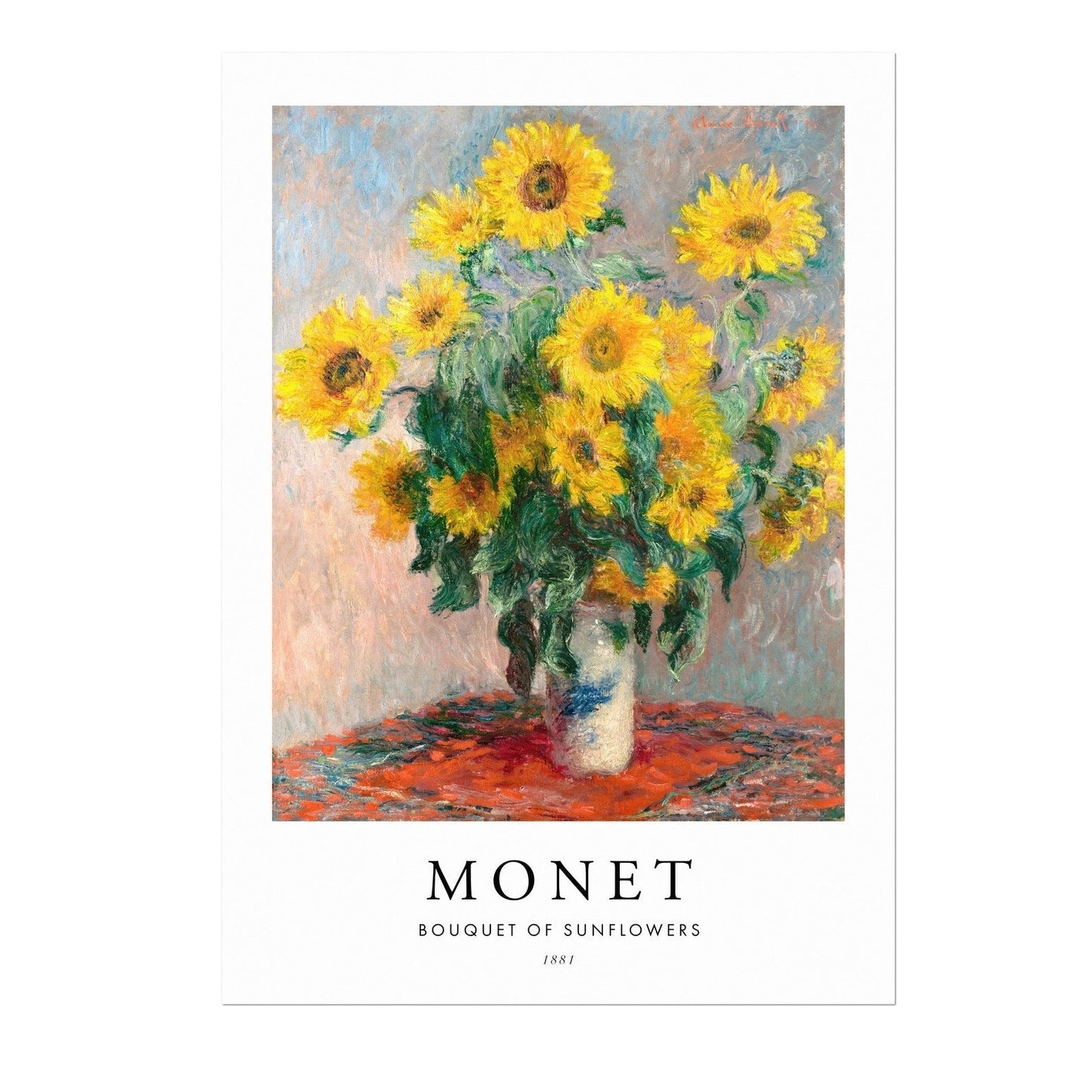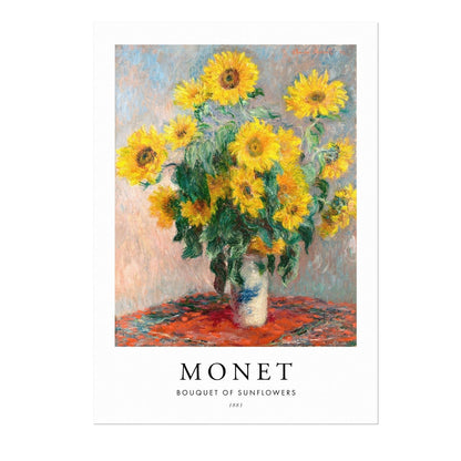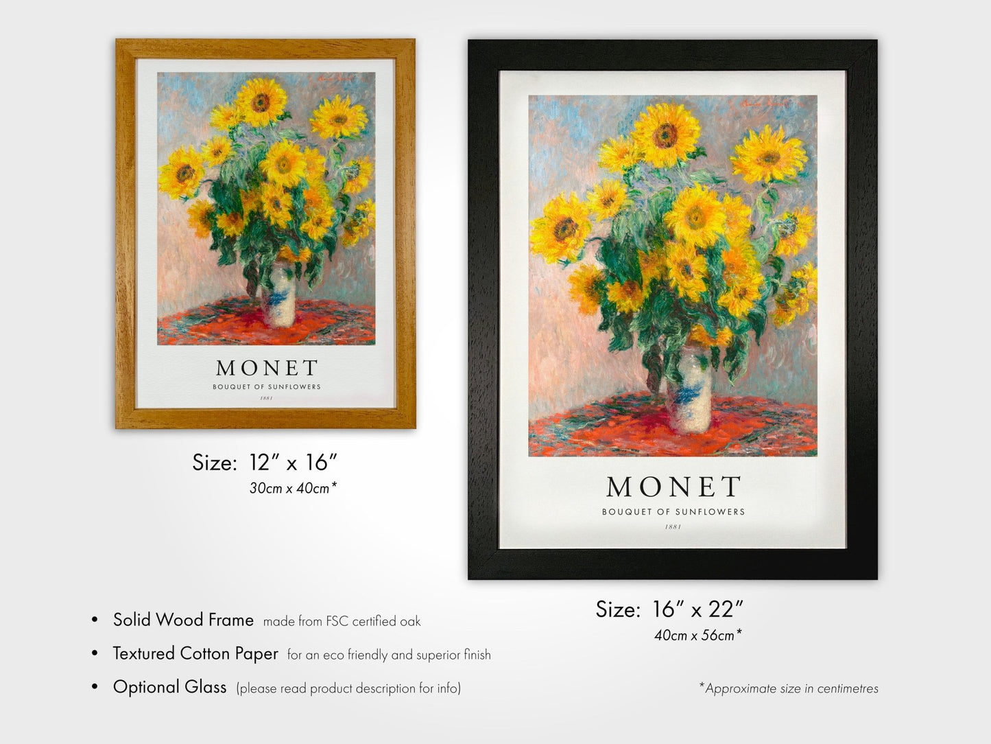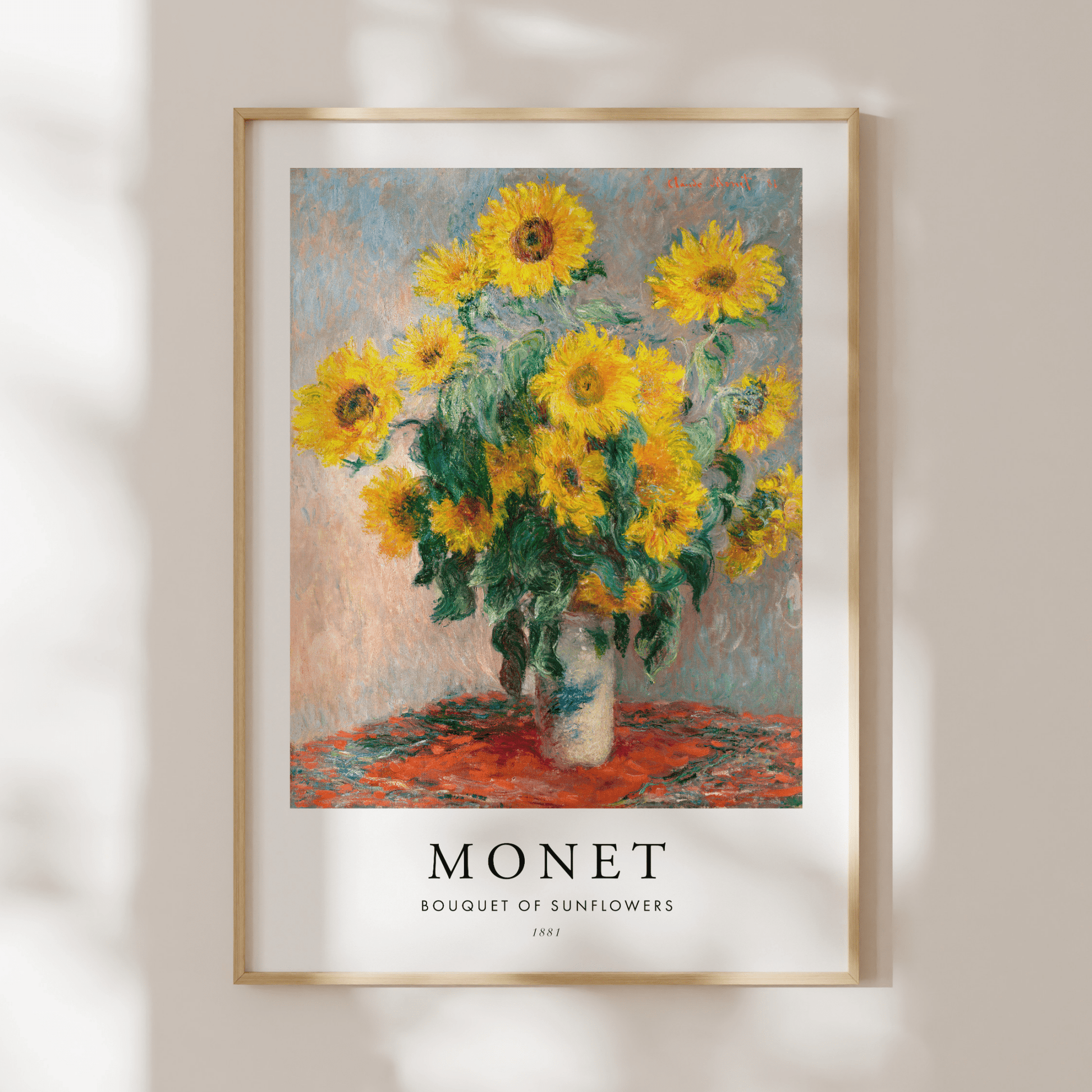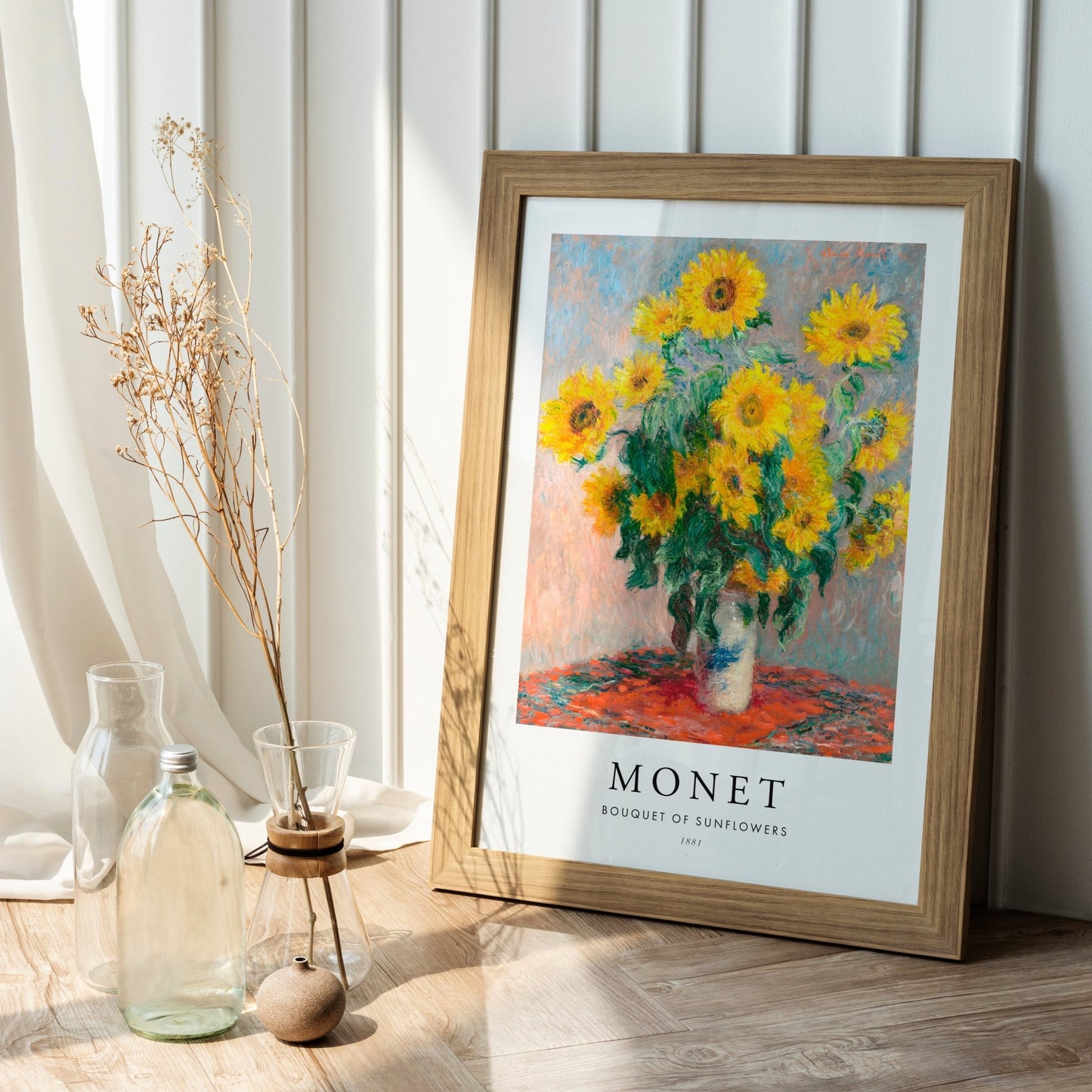 An exclusive poster design created in-house, featuring Claude Monet’s classic ‘Bouquet Of Sunflowers,’ available to order as a premium giclée art print with a wide range of framing options.