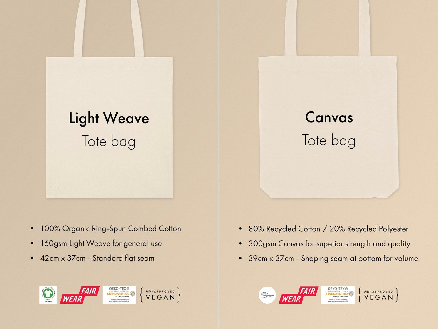 Choose from 160gsm Light Weave for everyday use or 300gsm Canvas for superior quality and durability (See images for full product comparison).