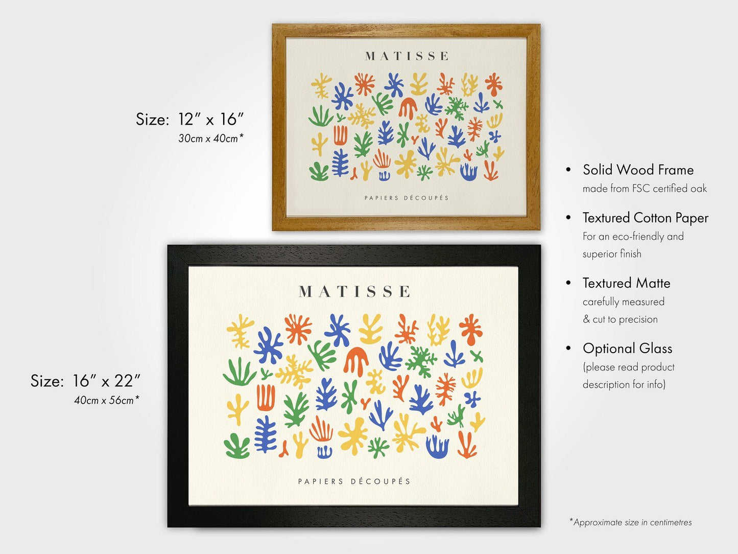 An exclusive poster design created in-house, inspired by vintage Matisse exhibition posters, available to order as a premium giclée art print with a wide range of framing options.