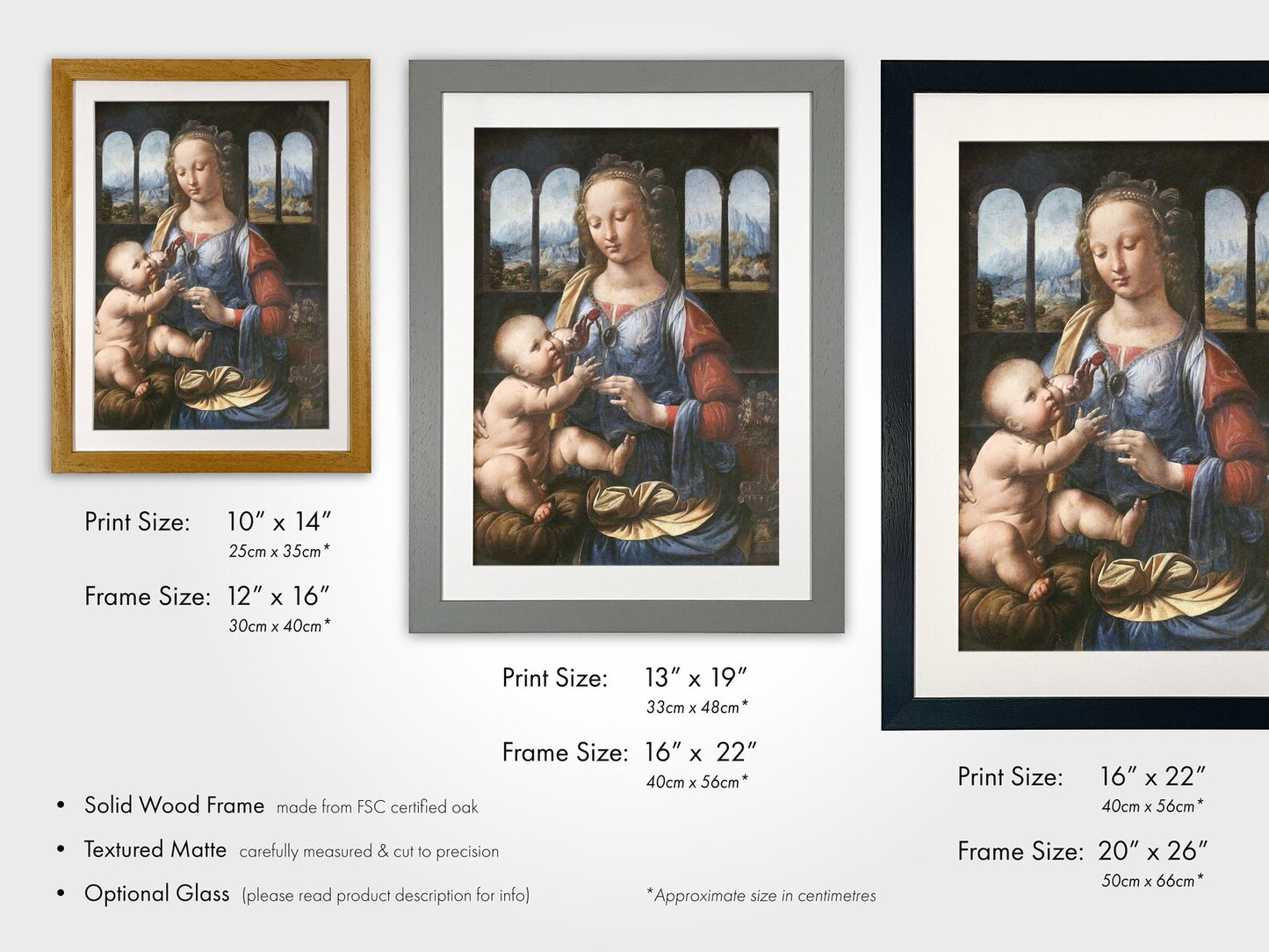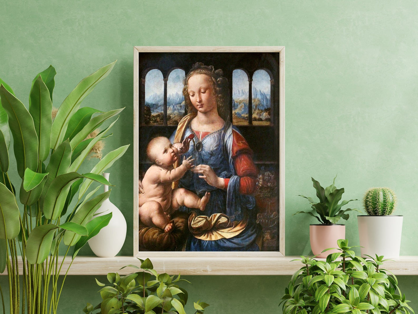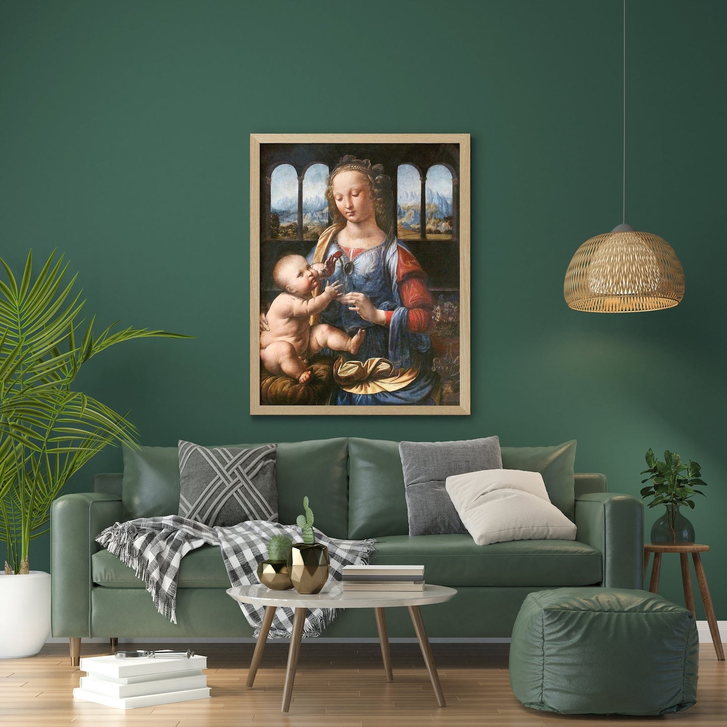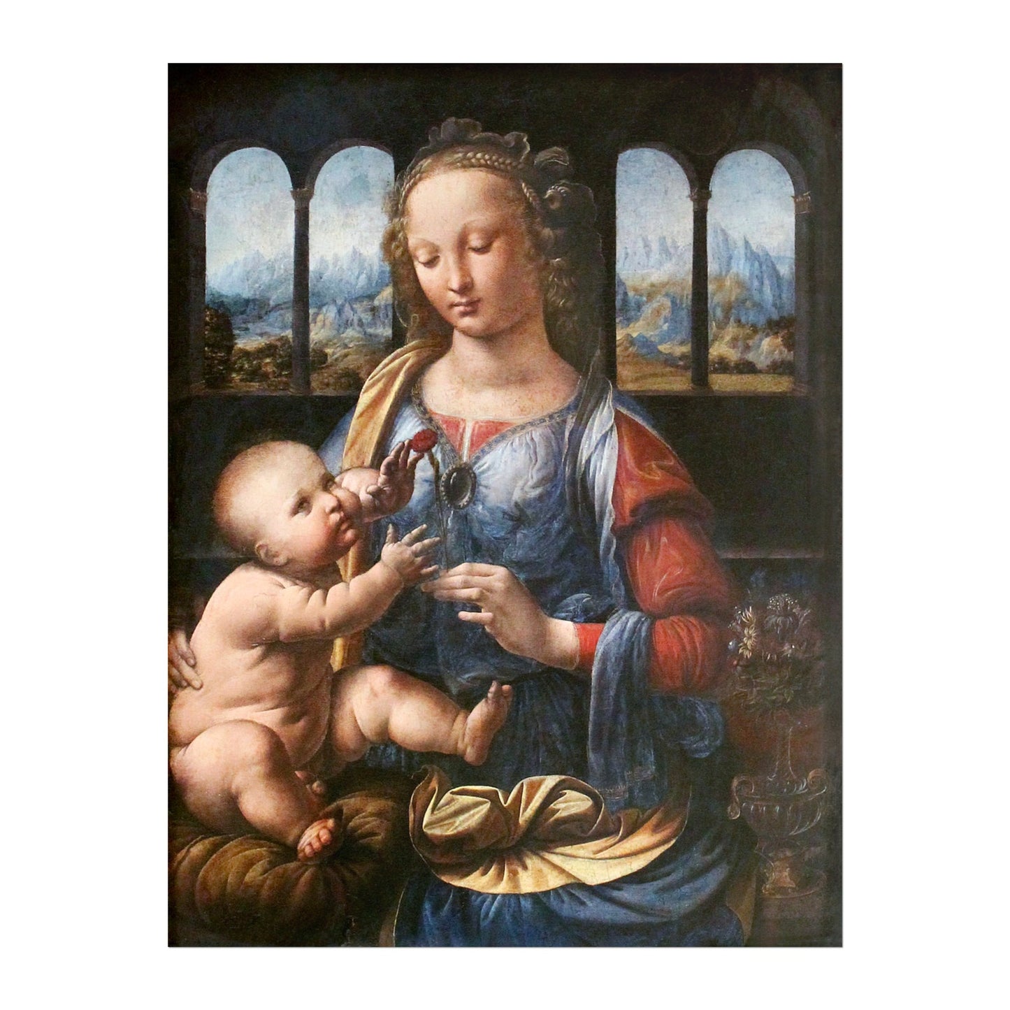 Leonardo Da Vinci's classic painting titled ‘Madonna of the Carnation', available to order as a premium giclée art print with a wide range of framing options.