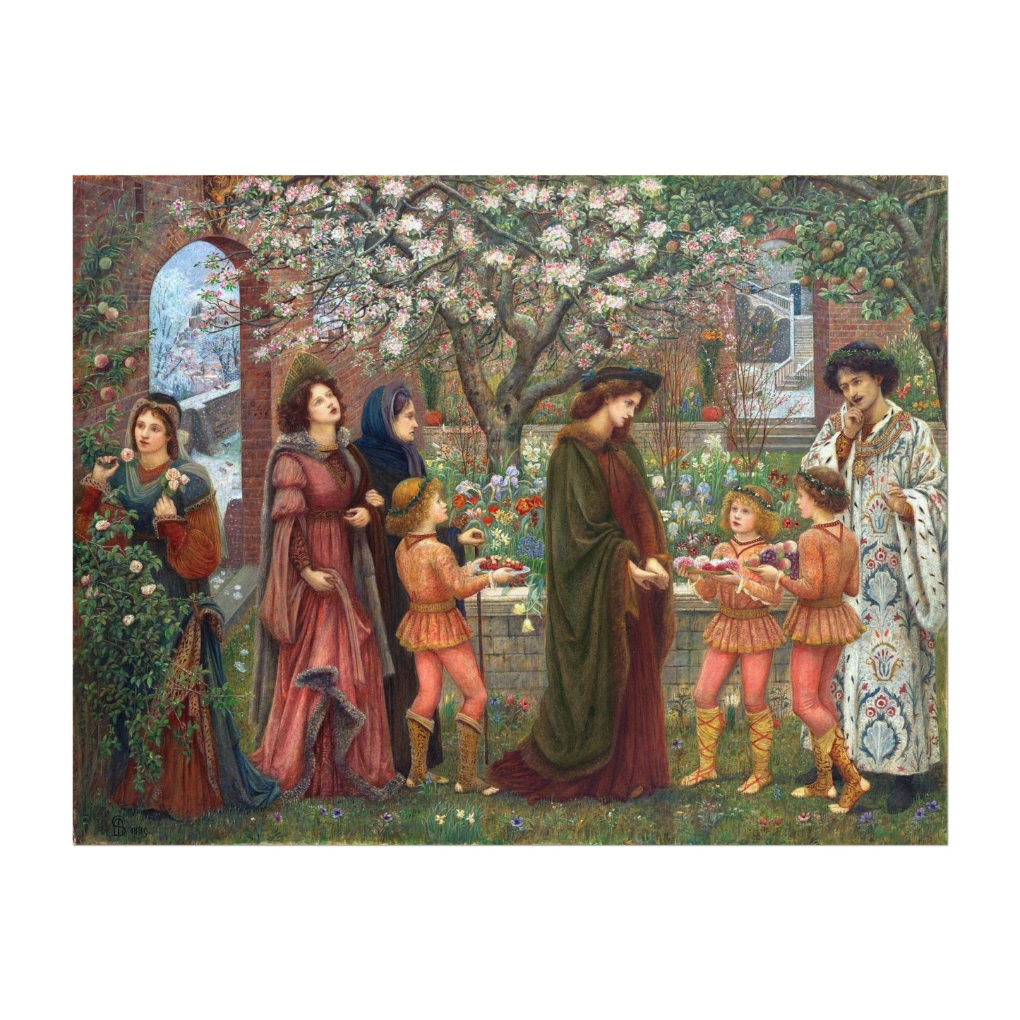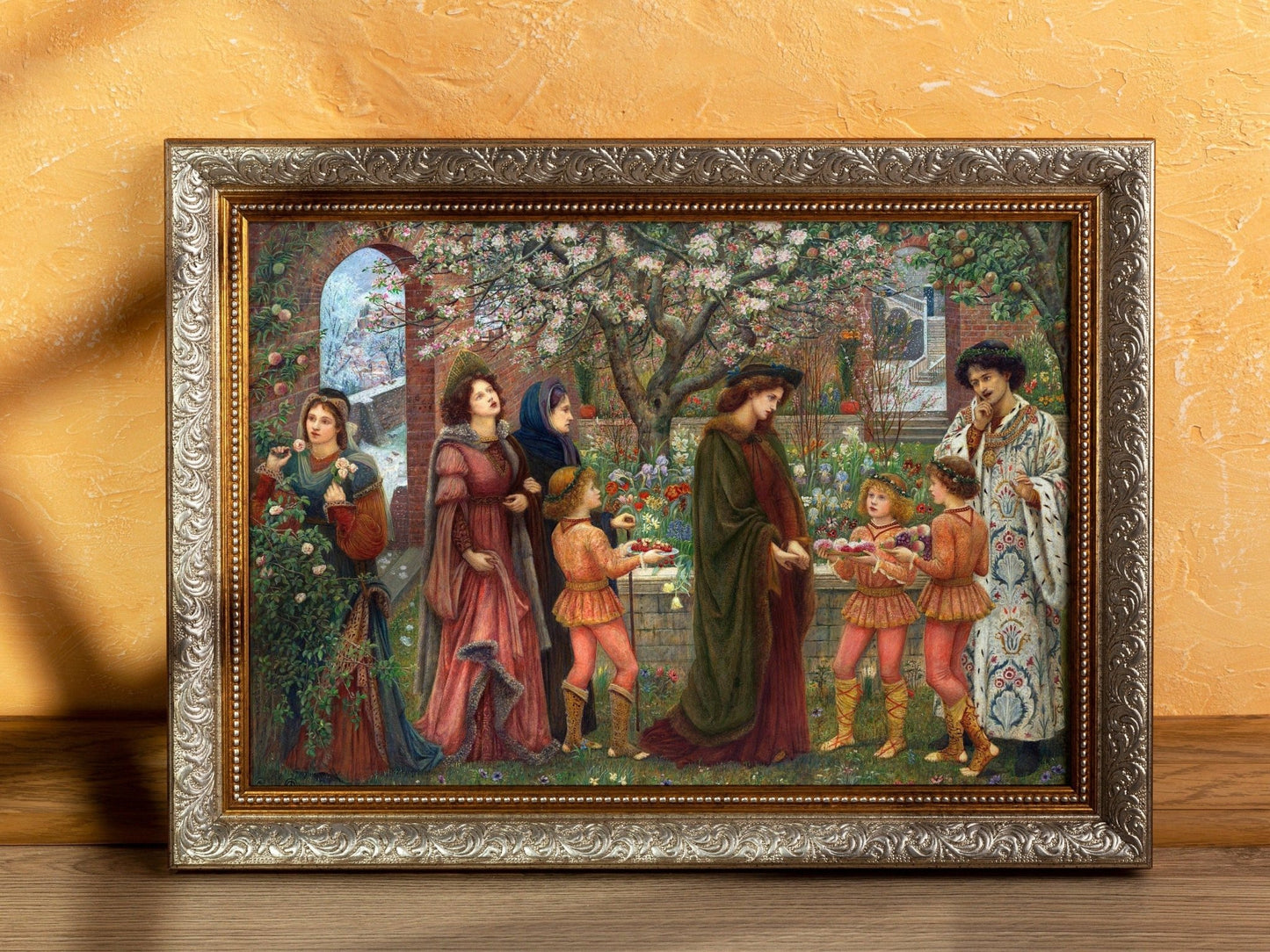 A classic Pre-Raphaelite painting by Marie Spartali Stillman titled 'The Enchanted Garden', available as a high resolution giclée print and with a variety of framing options.