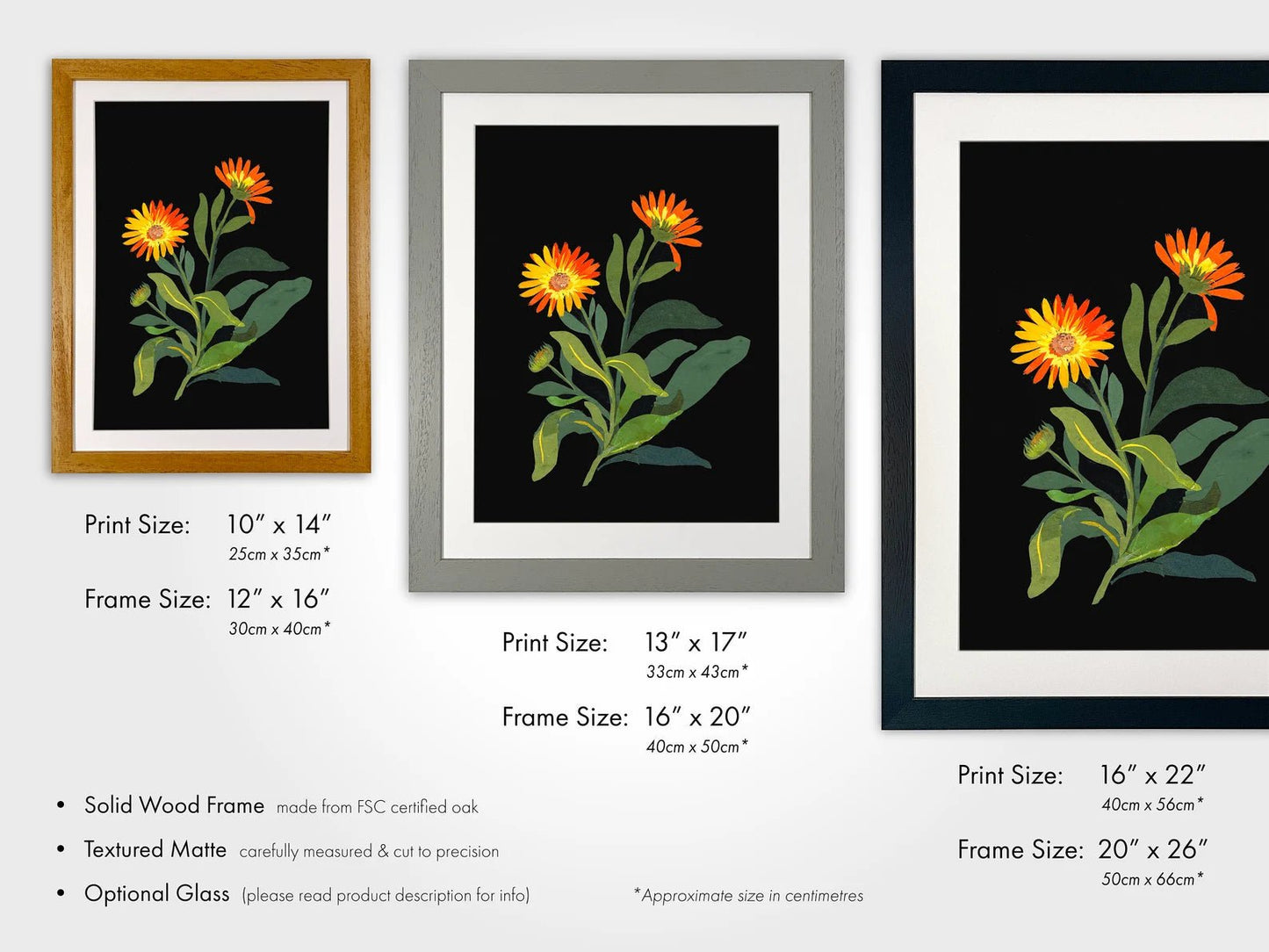 Please see related images for our range of frame options and detailed sizing information.