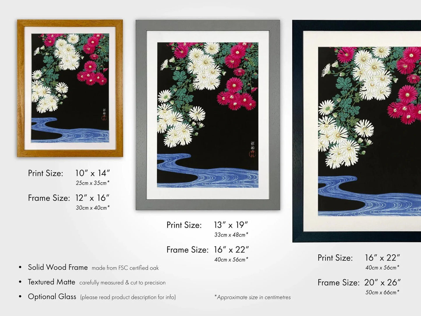 Please see related images for our range of frame options and detailed sizing information.