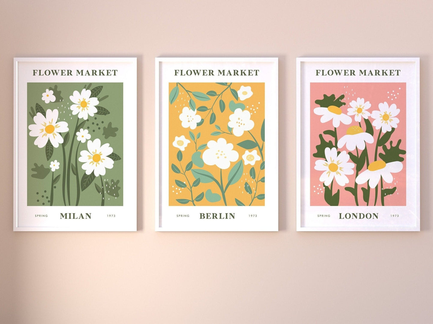 Set of 3 Flower Market Poster Prints (Milan / Berlin / London)