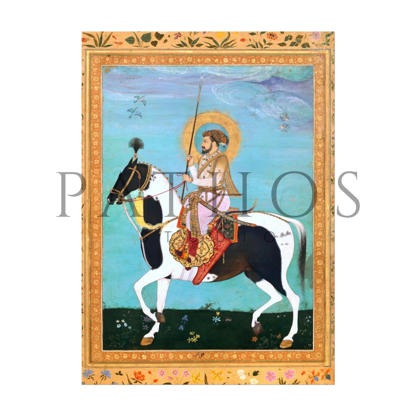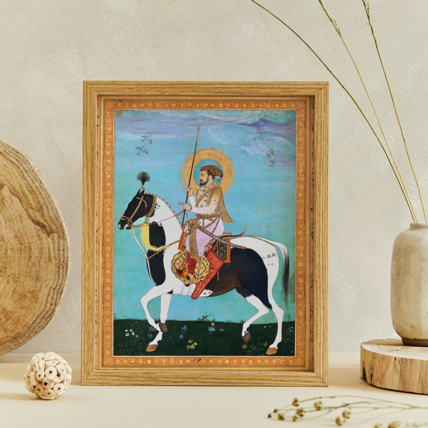 Shah Jahan on Horseback (Traditional Indian Miniature Art)