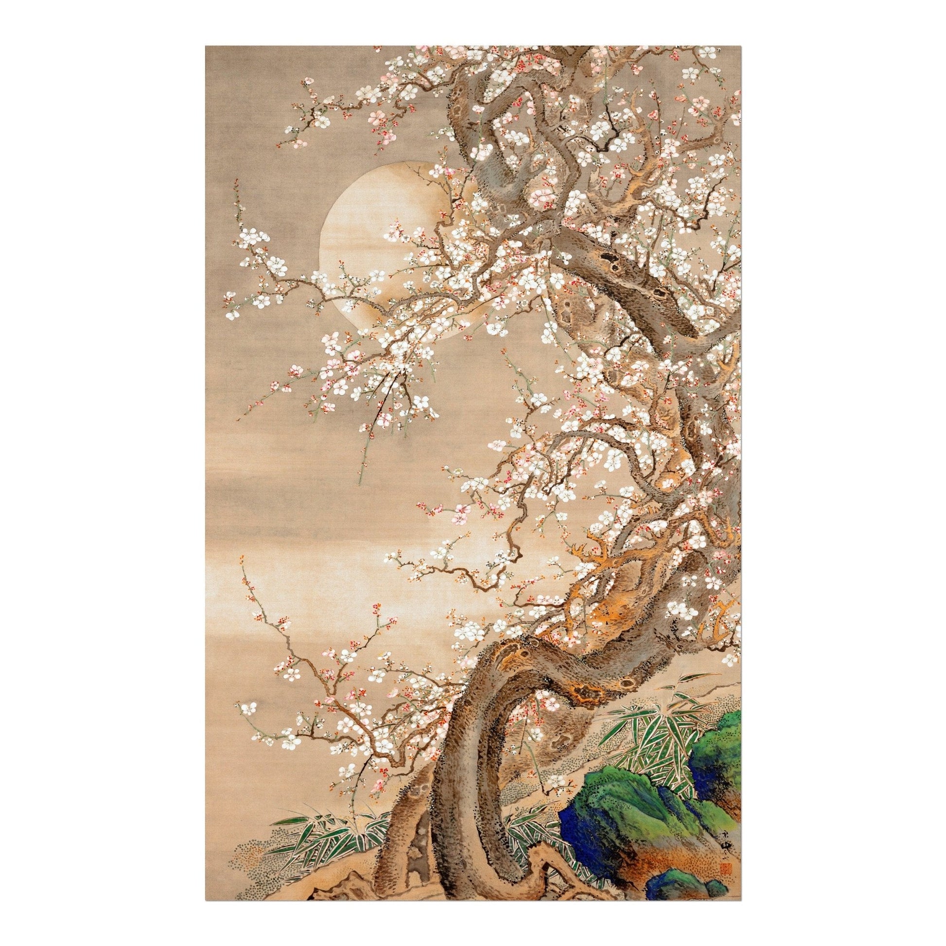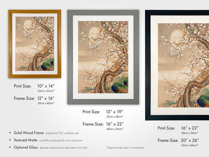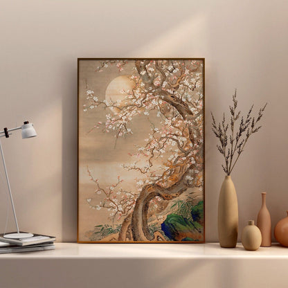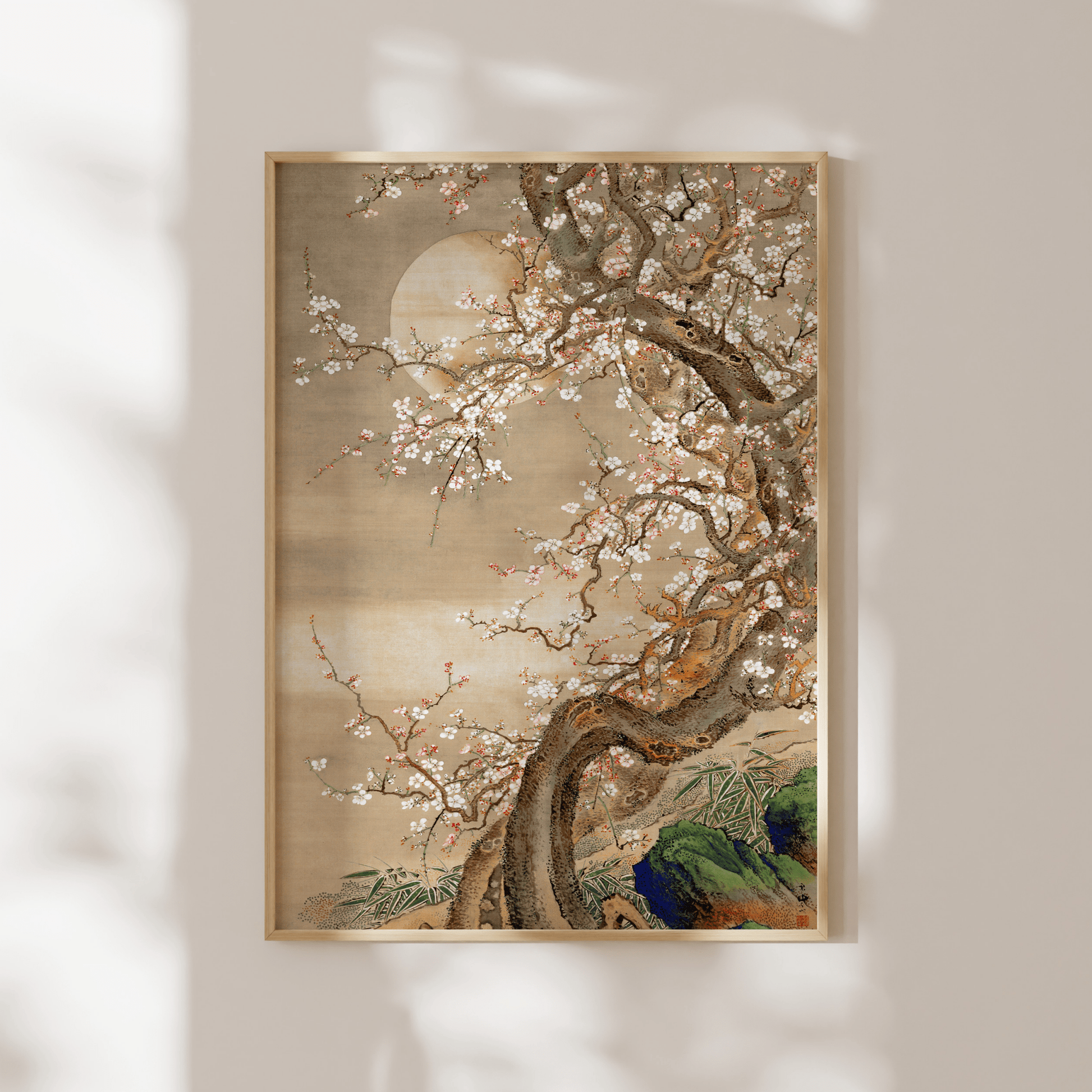Sō Shizan's classic Japanese painting titled 'Plum Blossoms In Moonlight', available as a premium giclée print and with a variety of framing options.