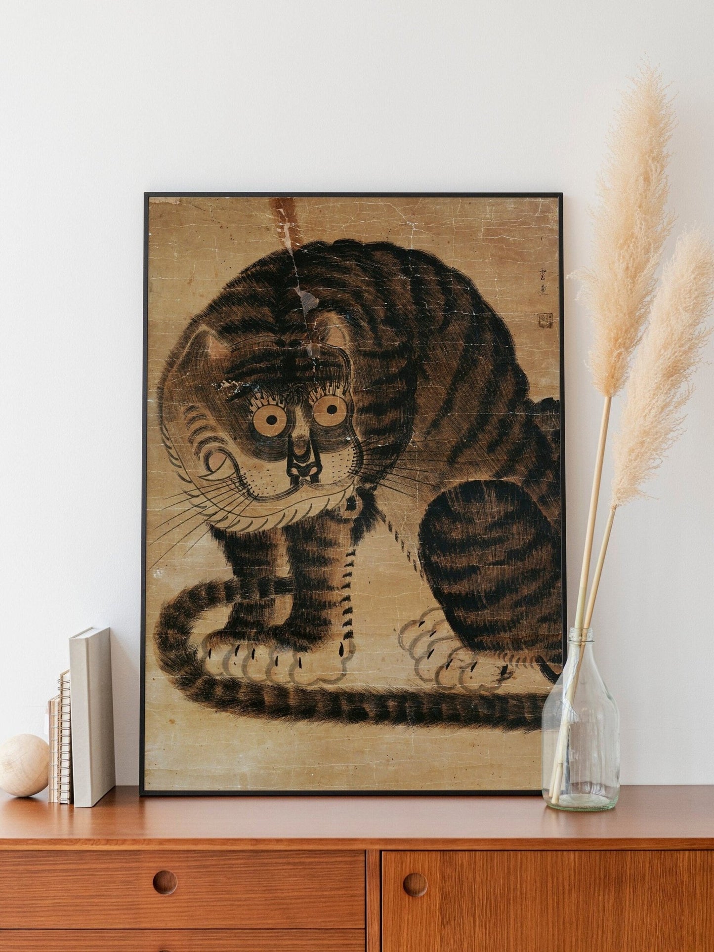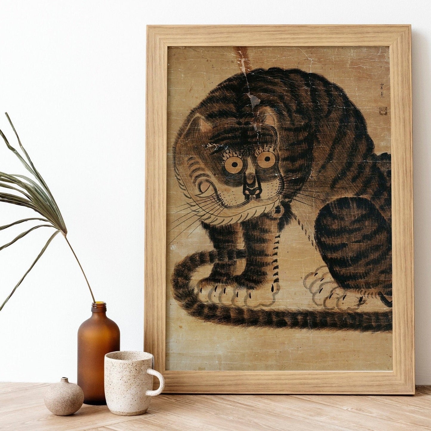 Traditional Korean art depicting a tiger. Available to order as a premium giclée art print with a wide range of framing options.