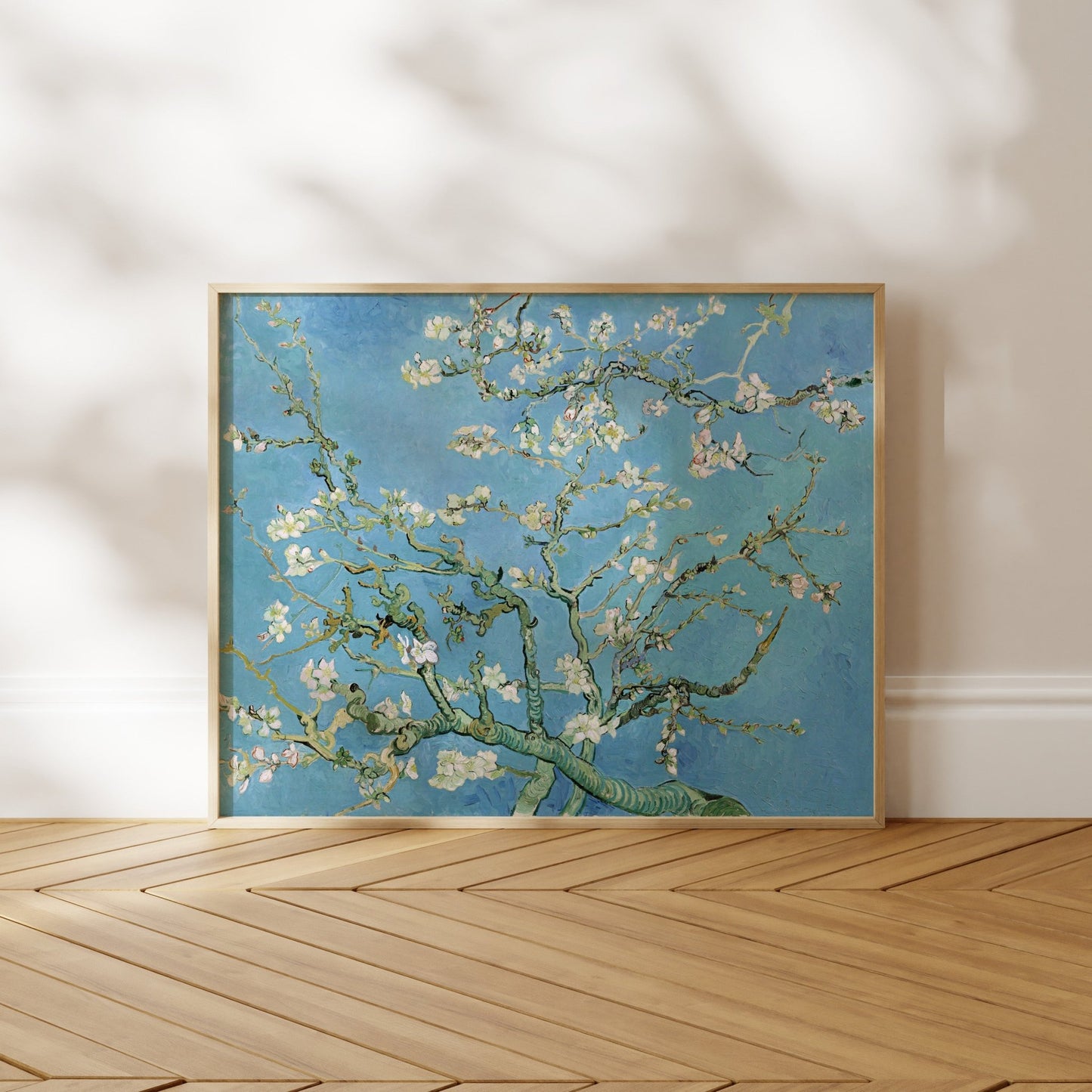 Vincent Van Gogh's classic oil-on-canvas painting titled 'Almond Blossoms', available to order as a premium giclée art print with a wide range of framing options.