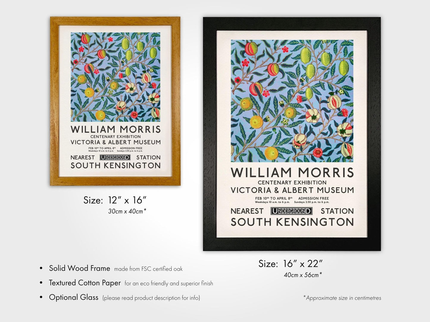 William Morris' classic textile art, produced in the style of a London Underground Centenary Exhibition poster and available with a variety of framing options.