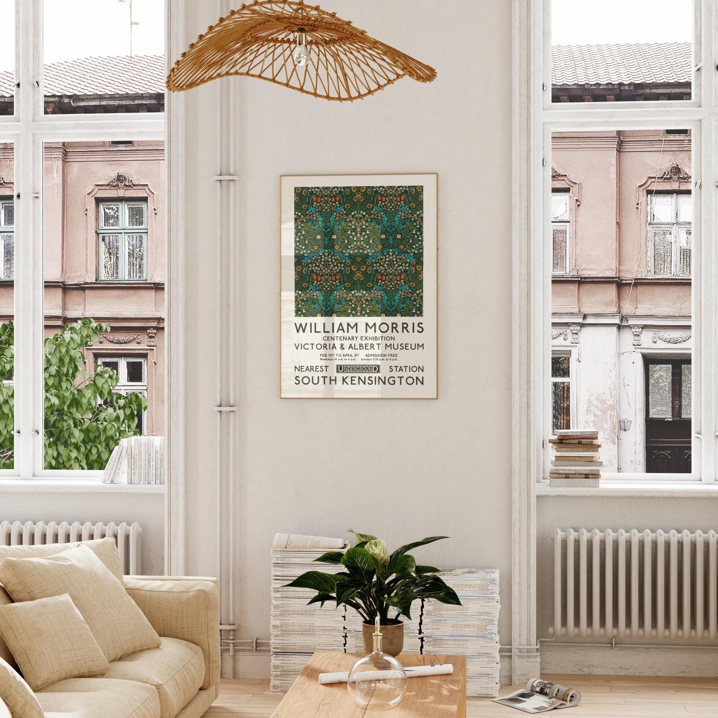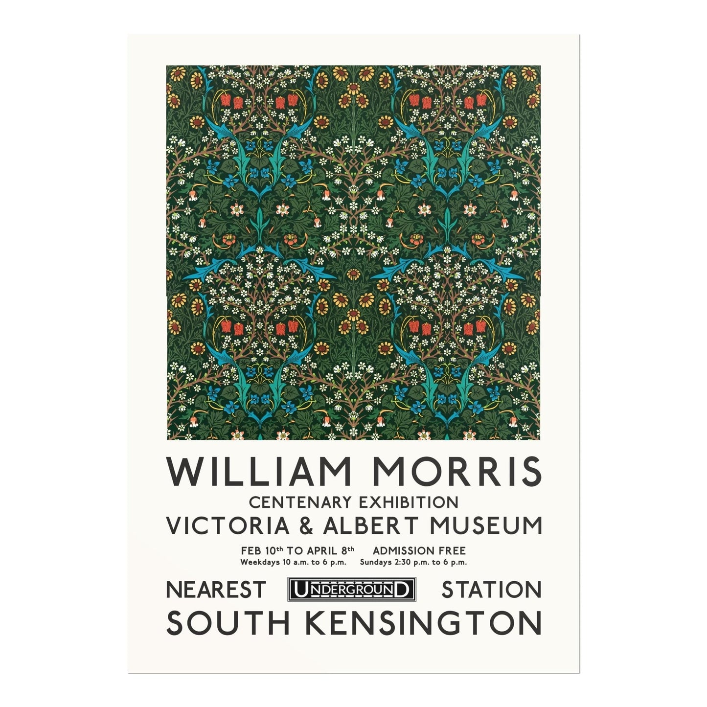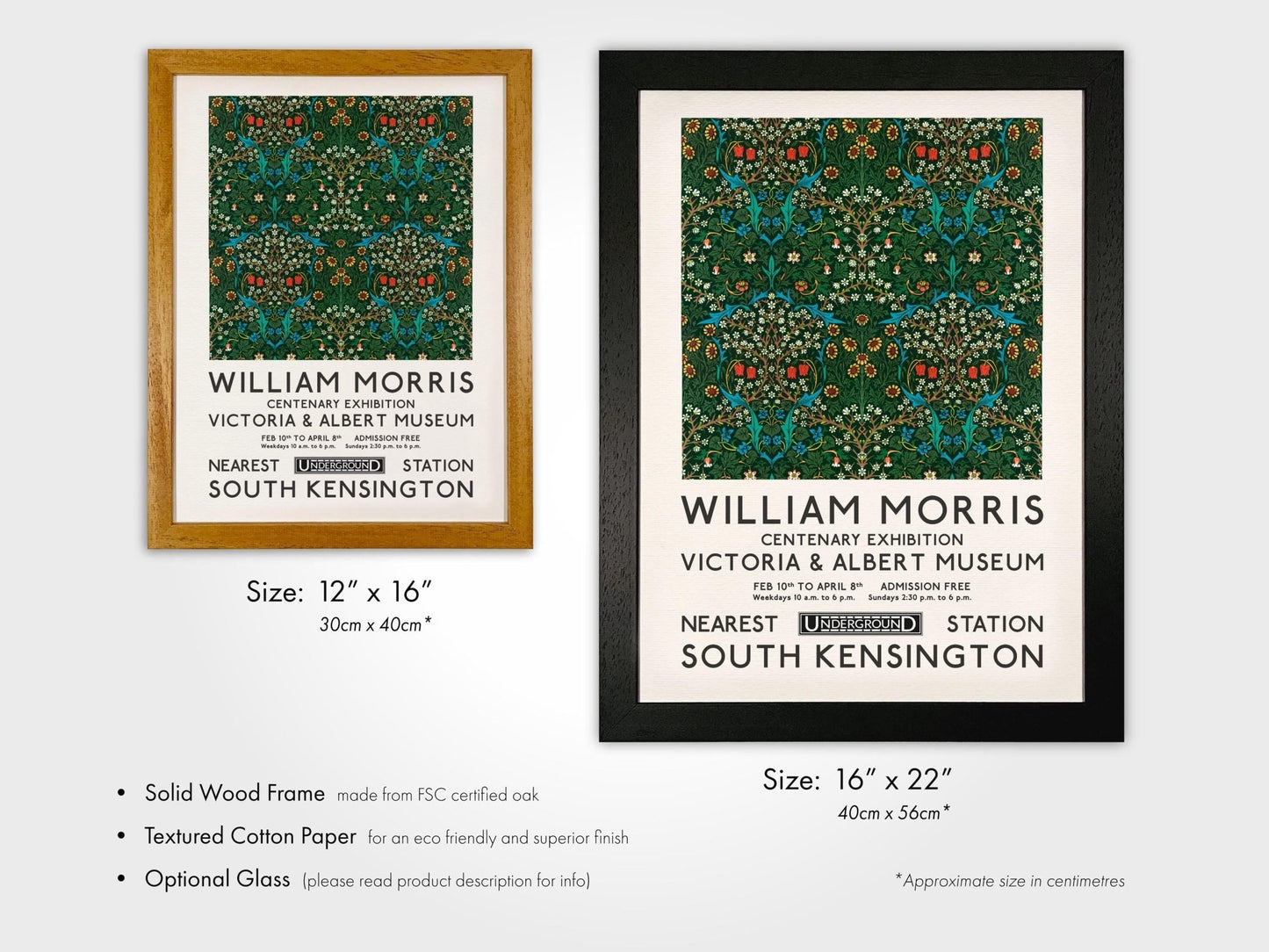 William Morris' classic textile art, produced in the style of a London Underground Centenary Exhibition poster and available with a variety of framing options.